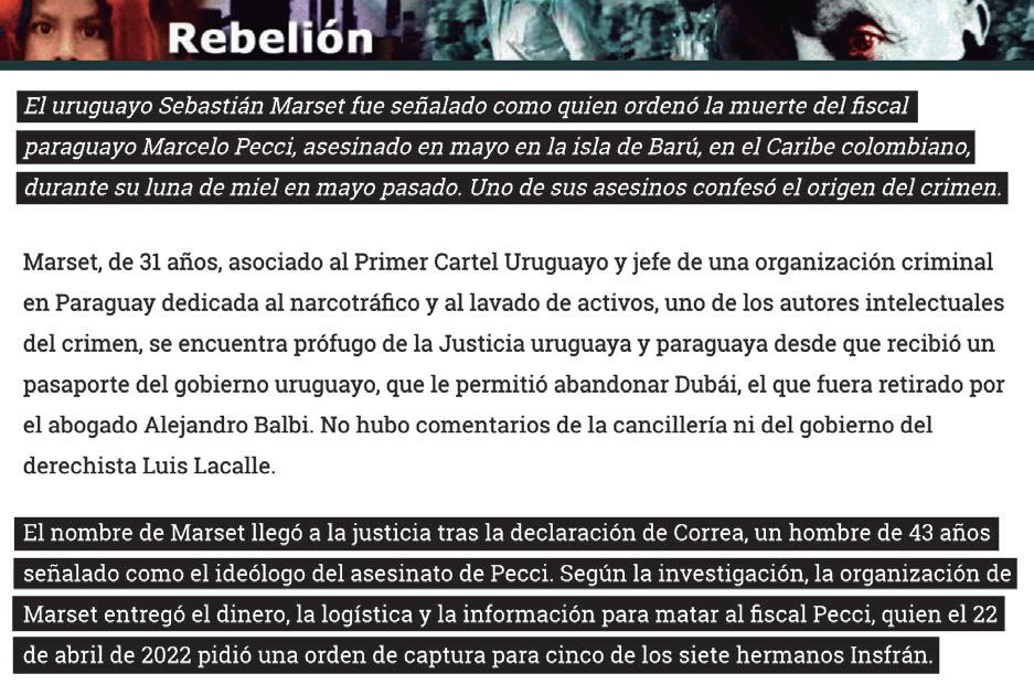 Tanto el clan Insfrán como la organización Marset quedaron al descubierto con el megaoperativo antinarco A Ultranza Py activado en febrero de 2022 y que tuvo entre sus fiscales al asesinado Pecci. De esta estructura el que sigue zafando