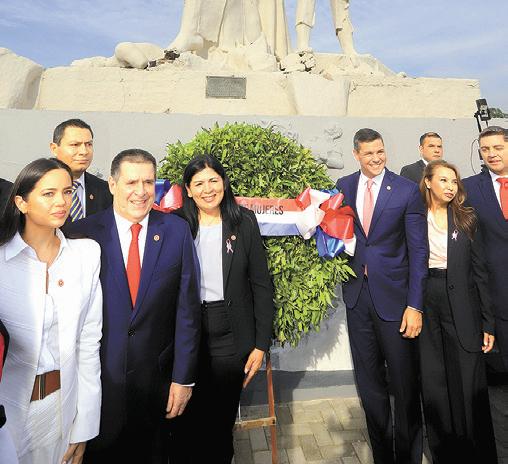 El presidente de la República, Santiago Peña, y el titular de la Asociación Nacional Republicana (ANR), Horacio Cartes, participaron del acto de conmemoración del Día de la Mujer Paraguaya, organizado desde el monumento de Las Residentas en la ciudad de Luque por el Comité de Mujeres de la ANR.