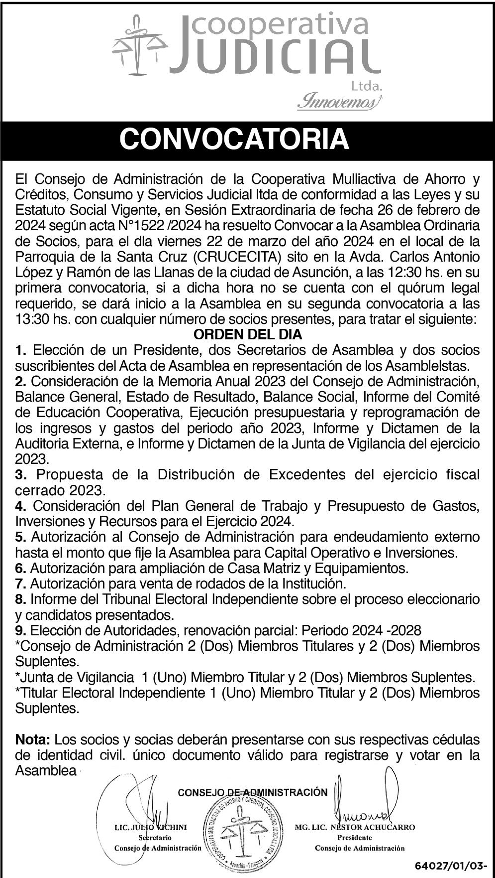En otra parte, el documento presentado ante la Fiscalía ratifica el cargo de senadores del PLRA. “Somos senadores