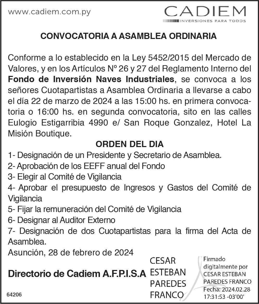 dores en la sala de sesiones”, indicó Ovelar.