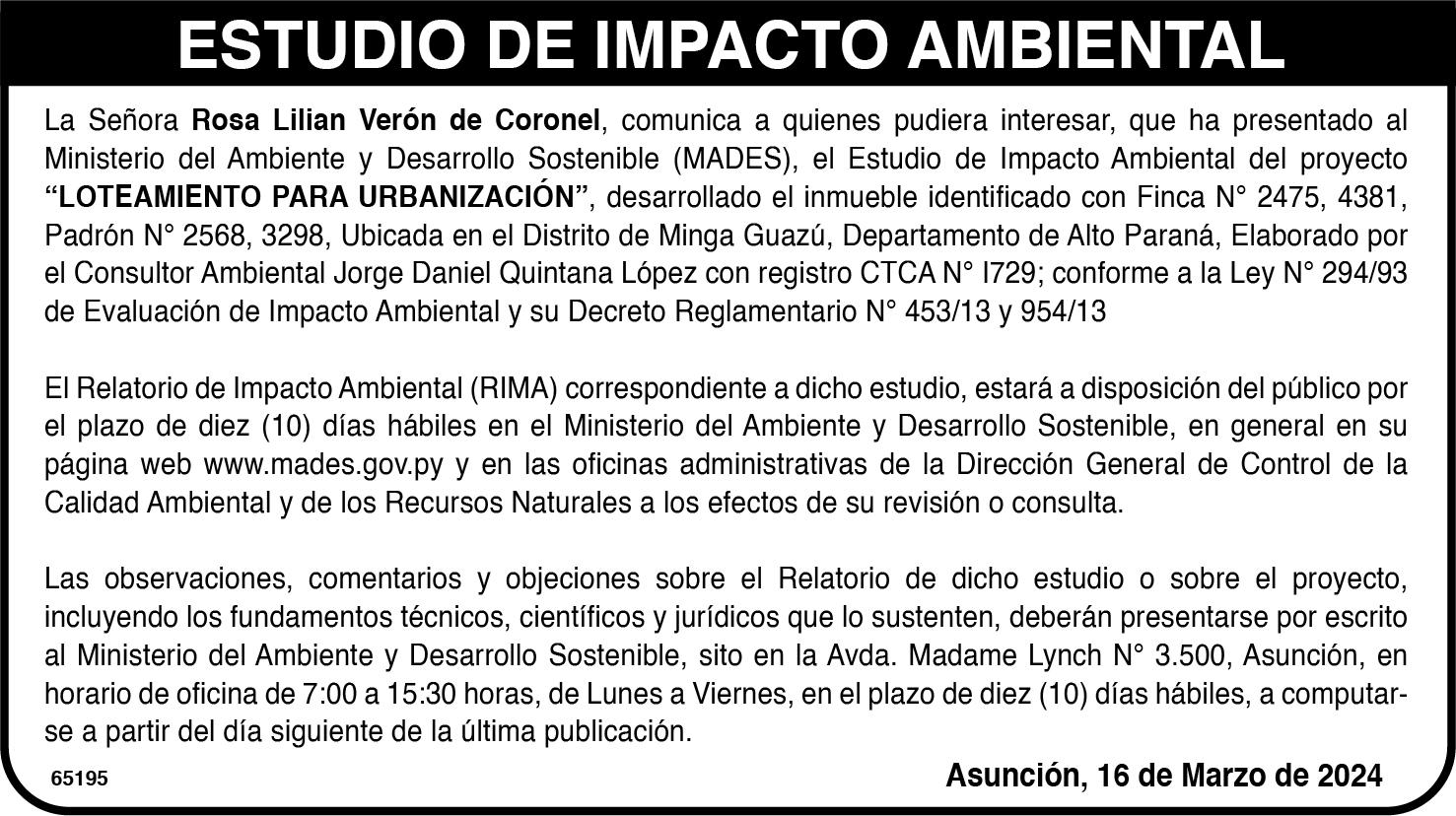 SUCESIÓN. LA JUEZ DE PRIMERA INSTANCIA EN LO CIVIL,COMERCIAL Y LABORAL DE SAN PEDRO DEL PARANÁ, DE LA TERCERA CIRCUNSCRIPCIÓN JUDICIAL DE LA REPÚBLICA, Abg. FRANCISCA SOLANA AQUINO, cita y emplaza por sesenta días a herederos y acreedores de la sucesión de CASIMIRO RUIZ LEON Y EDELINA BAEZ DE RUIZ. El juicio radica en la secretaría a mi cargo, Abg. ANIBAL AMARILLA NAVARRO, Actuario Judicial. SAN PEDRO DEL PARANÁ, 5 de marzo de 2024. De igual manera se hace saber al destinatario de este edicto que el mismo cuenta con el Código QR, por lo cual, para tener certeza de que este documento es válido, deberá utilizar el lector del Código QR, siendo ya en consecuencia, innecesaria la autenticación manual por parte del Actuario del Juzgado, conforme a la Acordada N° 1366/2019.-65089/24/03
