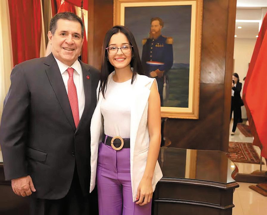 La joven fue recibida por el titular de la Junta de Gobierno, Horacio Cartes.