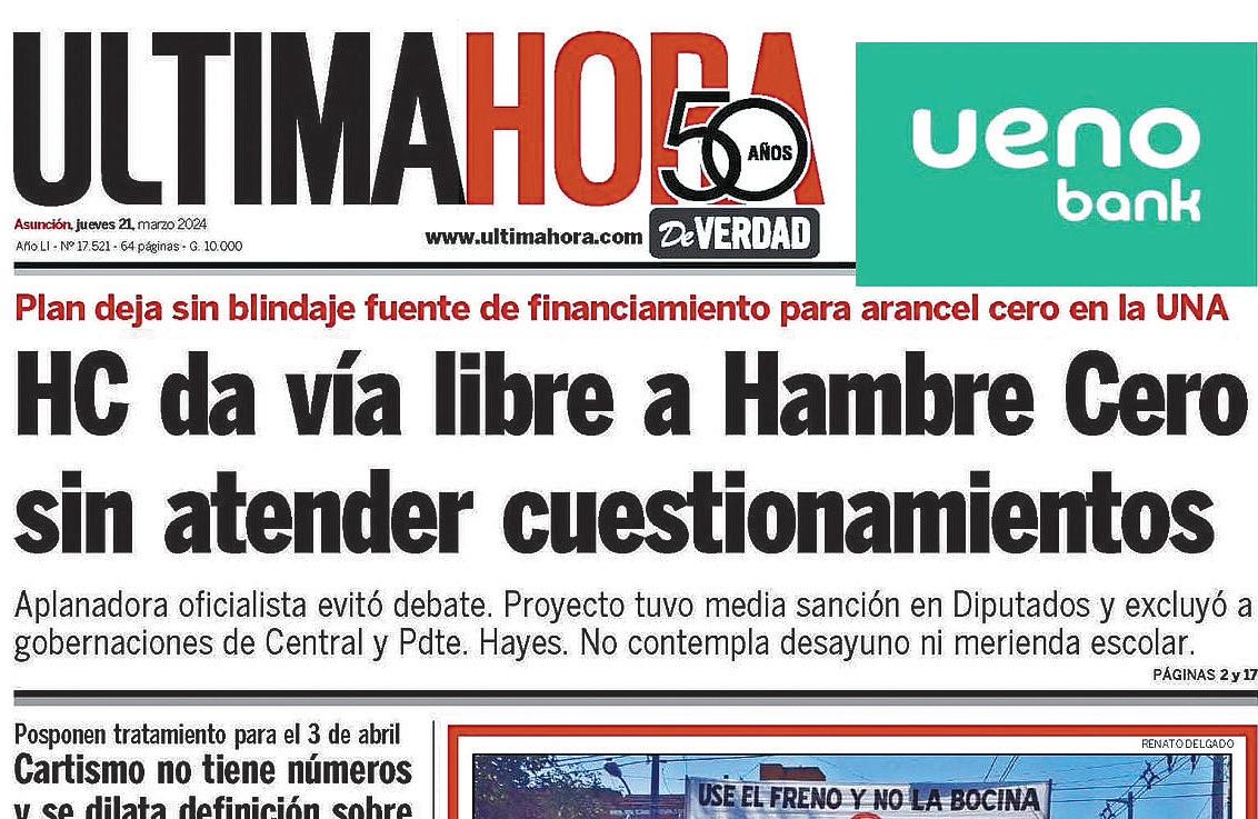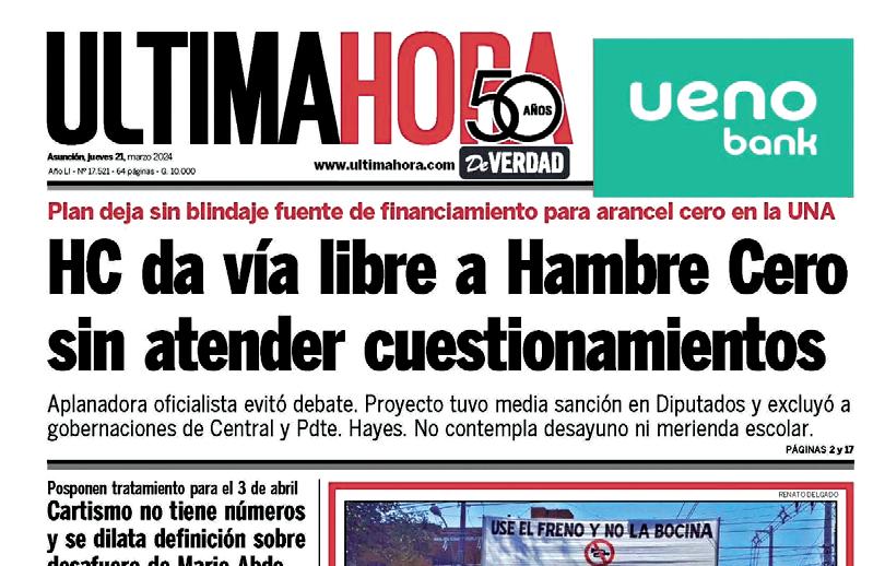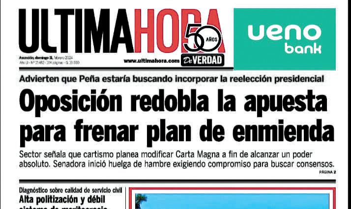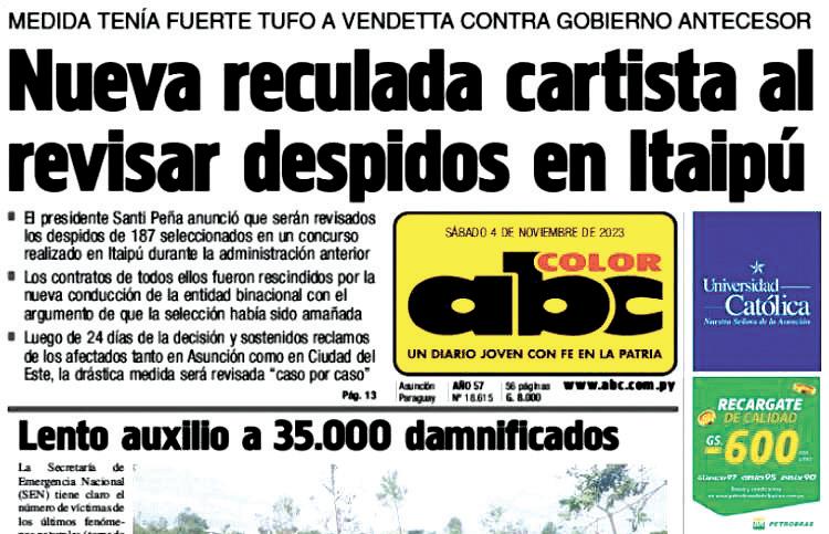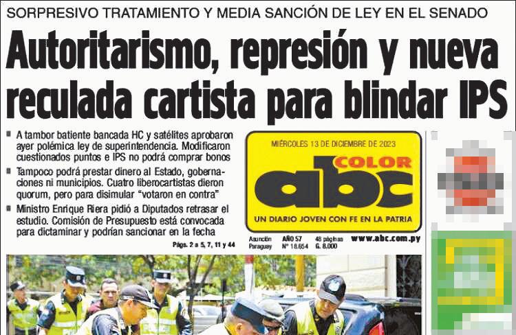 Parte de la prensa paraguaya, muy indulgente con la administración de Abdo Benítez, se caracteriza por una fuerte campaña contra toda iniciativa del gobierno de Santiago Peña. Ataques infundados sostenidos en mentiras sobre la ley de superintendencia o la ley de hambre cero, entre otros proyectos, cayeron en saco roto ante la realidad de los hechos. P. 3