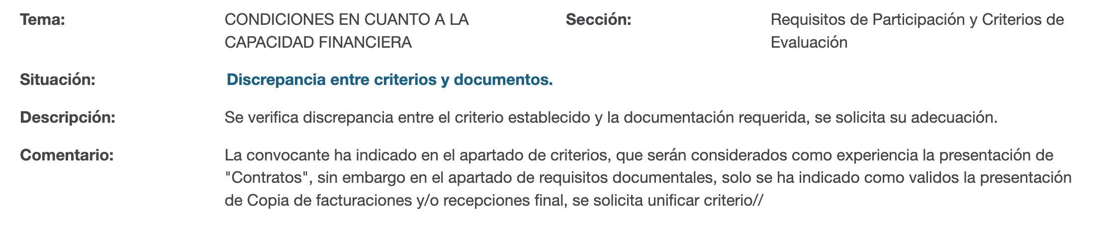 Con esto, se deja abierta a que cualquier empresa que haya realizado ventas de productos lácteos en el último lustro pueda participar, con lo que en teoría se abre la competencia para que más oferentes puedan acudir. Sin embargo, la cosa cambia drásticamente cuando se hace referencia a la experiencia requerida en cuanto a los alimentos sólidos (ver facsímil).