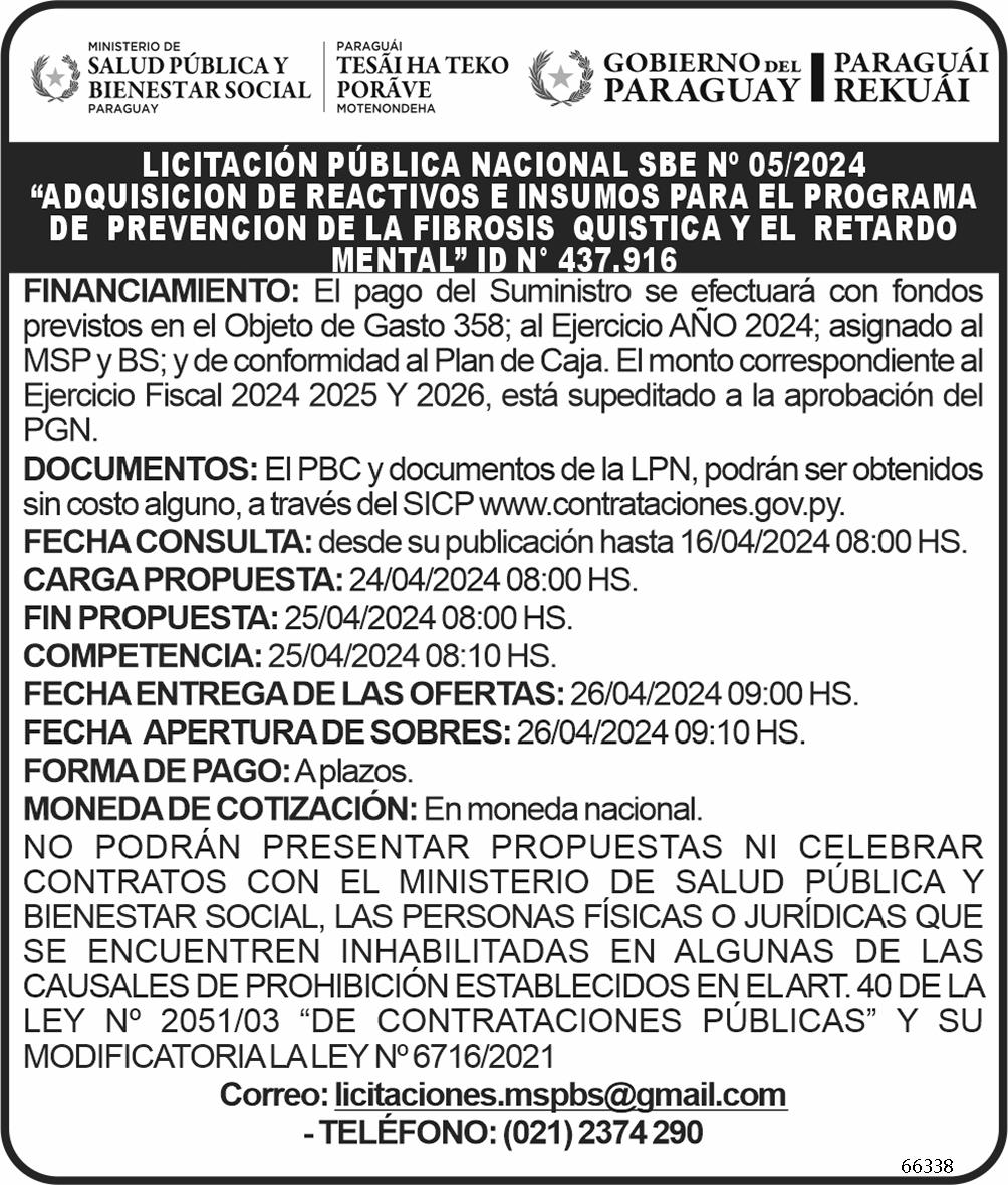 El proceso de compra aparece bajo el ID 434669 en la página web de la DNCP y en total la institución pretende destinar más de G. 107.439 millones (unos USD 15 millones) a la licitación. Precisamente es en este sitio donde se encuentra la documentación en la que se pueden leer los puntos cuanto menos llamativos.