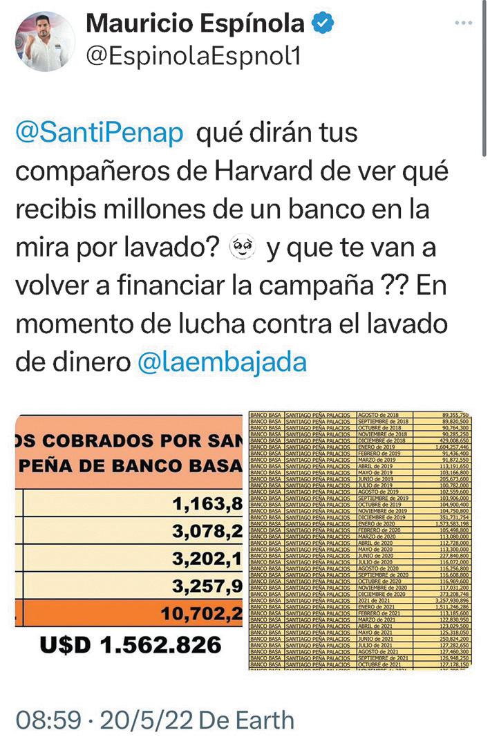 Otro hecho notorio e irrefutable es la publicación realizada por Mauricio Espínola, el entonces secretario privado adjunto del presidente de la República, quien al igual que su jefe accedió a información confidencial y publicó en su cuenta de la red social Twitter (X) los salarios percibidos por el entonces candidato presidencial Santiago Peña como directivo del Banco Basa, también a efectos de desacreditarlo políticamente.