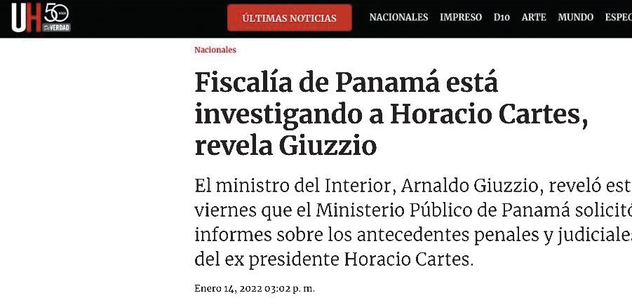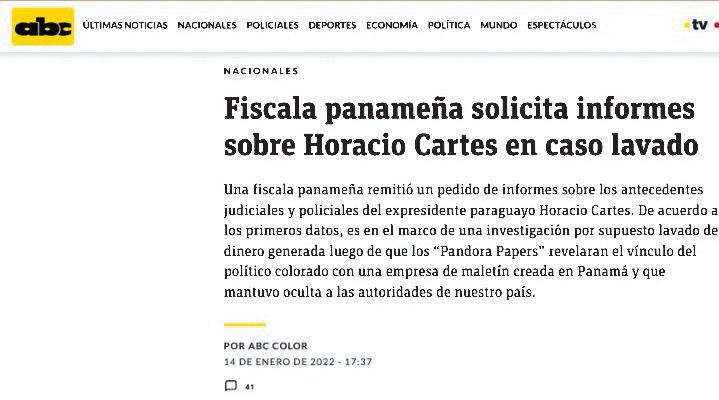 al expresidente Horacio Cartes, con el fin de atacarlo políticamente. La filtración ocurrió cuando el diario Última Hora emitió la publicación periodística: “FISCALÍA DE PANAMÁ ESTÁ INVESTIGANDO A HORACIO CARTES, REVELA GIUZZIO”, así como cuando el diario Abc Color publicó la nota “FISCALÍA PANAMEÑA SOLICITA INFORMES SOBRE HORACIO CARTES EN CASO LAVADO DE DINERO”.