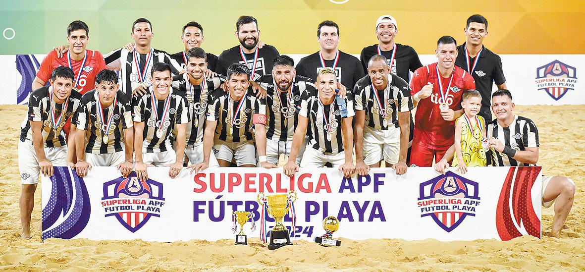 El plantel campeón de Libertad disfruta de una nueva consagración en fútbol de playa al ganar la tercera etapa del torneo Apertura
