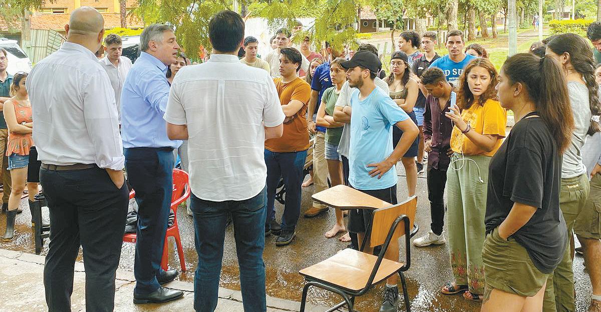 diálogo amplio con los estudiantes a fin de compartir pareceres y también comentarles cómo el Gobierno está viendo la forma de garantizar el blindaje del Arancel Cero a través del decreto reglamentario. Lastimosamente, no pudieron avanzar en ese diálogo, debido a que los estudiantes se rehusaron a hablar con ellos.