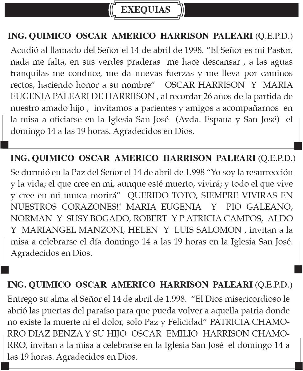 EN LA AGENDA FECHA 14 DOMINGO 21 DE ABRIL