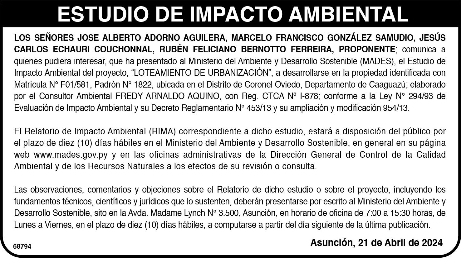 tas de la Vocería del Gobierno, Centurión detalló que este proyecto se hace en coordinación con otras instituciones como el Ministerio del Ambiente y Desarrollo Sostenible (Mades), el Ministerio de Economía y Finanzas (MEF), ente encargado de dotar de recursos, además de la Municipalidad de Asunción.