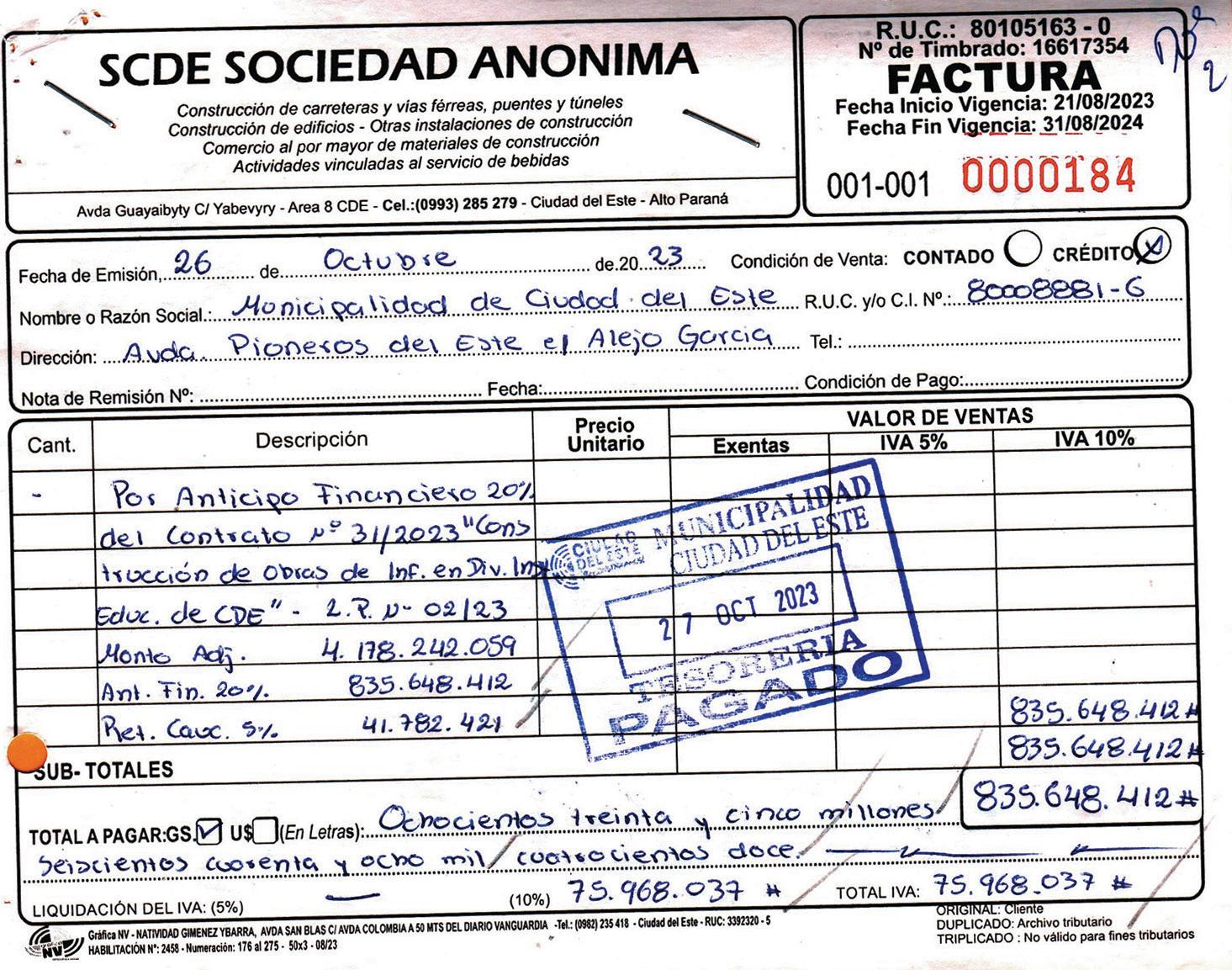 De acuerdo con la denuncia presentada ante el Ministerio Público por la Contraloría Ciudadana de Ciudad del Este y documentos a los que tuvo acceso LN, la firma que se encuentra en la mira se trata de SCDE Sociedad Anónima, empresa mimada de la administración Prieto y que recibió