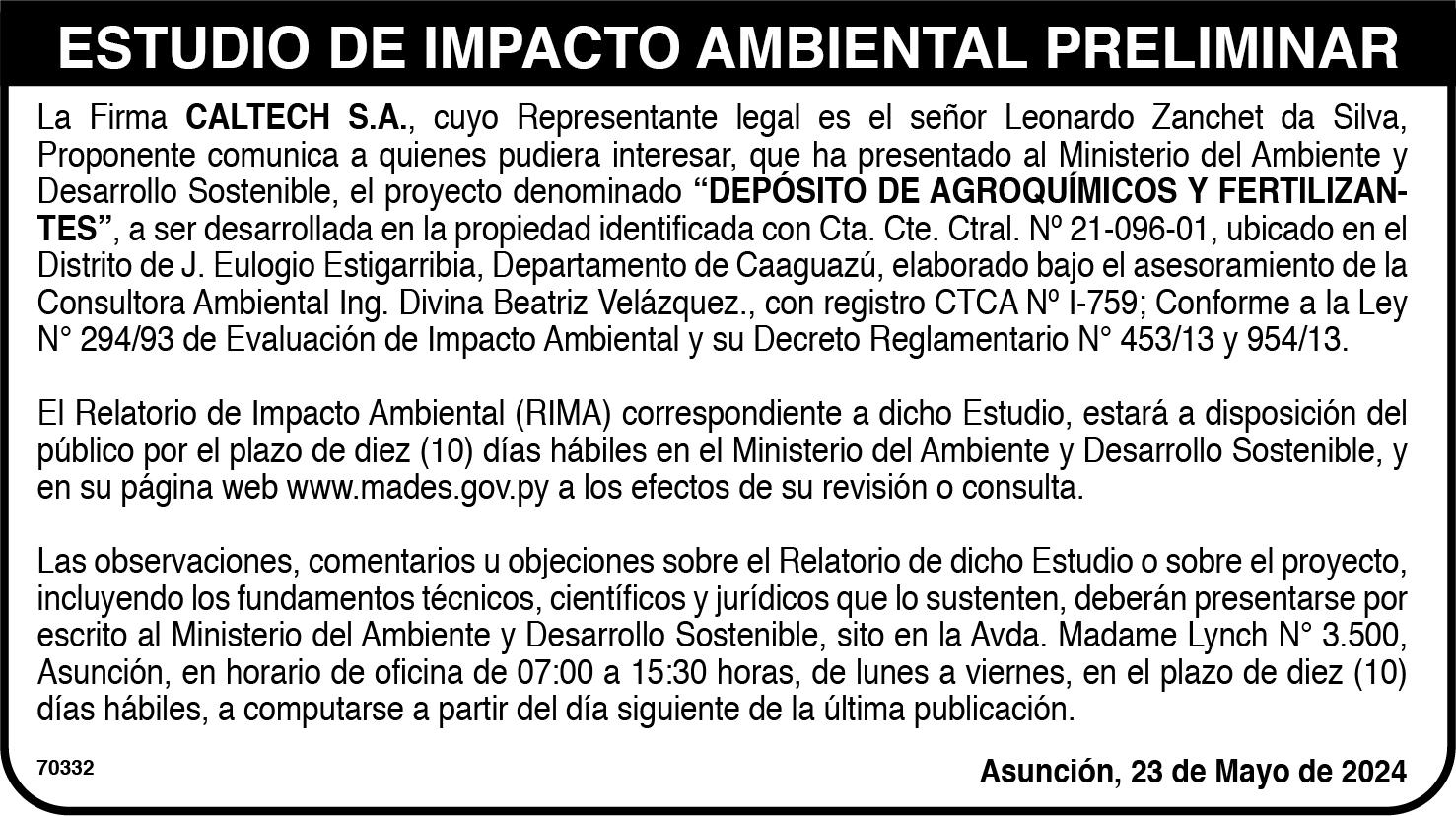 El 12 de diciembre, el juez del 7.° turno en lo Civil y Comercial, Édgar Rivas, ordenó el remate de la estancia Cielo Azul, propiedad de Cabeza Branca, en detrimento de la Senabico, que actualmente administra el inmueble incautado. Pese a los múltiples pedidos para realizar una subasta y pagar al acreedor, el juez dispuso que el remate se efectuara el 29 de diciembre de 2023, con publicaciones en el diario Abc Color, destacando las medidas cautelares que pesan sobre el inmueble.