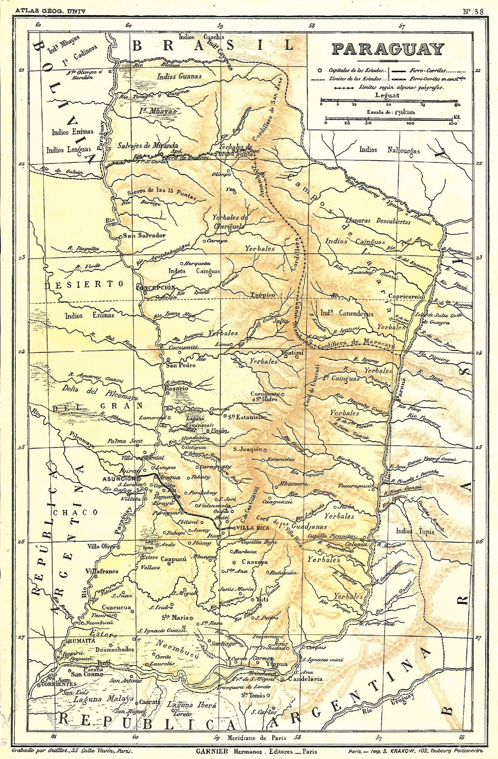 Mapas históricos del Paraguay Como colofón de las notas históricas sobre la Independencia que publicamos a lo largo de estos domingos de mayo, cerramos este mes de celebraciones patrias con esta reseña sobre los primeros mapas del Paraguay a los que hemos podido acceder, desde inicios del siglo XVII hasta la posguerra del 70, y con un diálogo con el geógrafo Fabricio Vázquez, quien reflexiona sobre el sentido del mapa como proyecto de nación. P. 22-23
