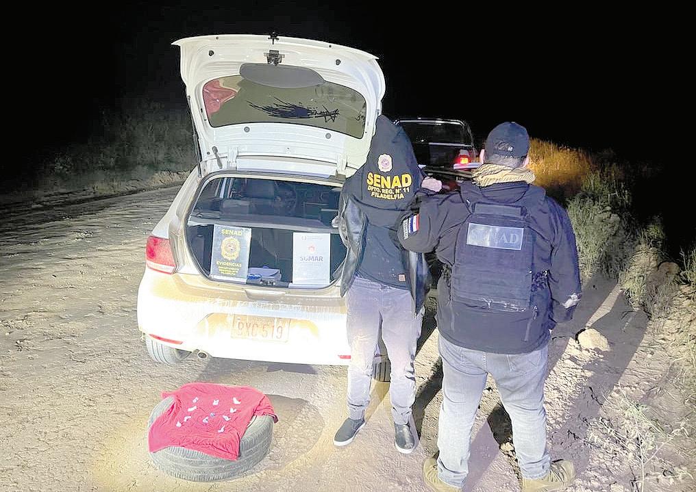 El fiscal antidrogas de Filadelfia, Chaco, Andrés Arriola, y los agentes especiales de la Secretaría Nacional Antidrogas (Senad) procedieron a la detención de una persona que hacía delivery de cocaína a bordo de un automóvil. El detenido fue identificado como Alfredo Omar Pereira Rojas, quien fue imputado por tenencia de sustancia prohibida de estupefacientes y a su vez se pidió su prisión preventiva.