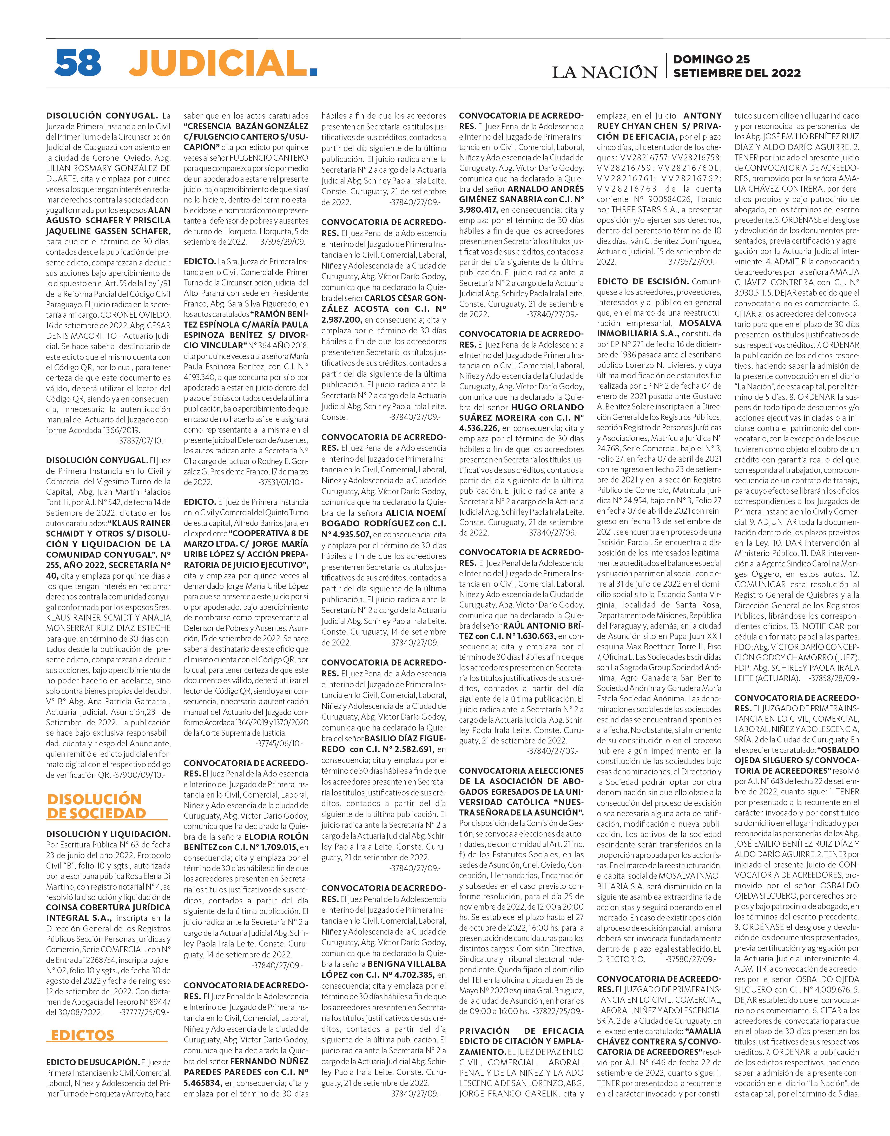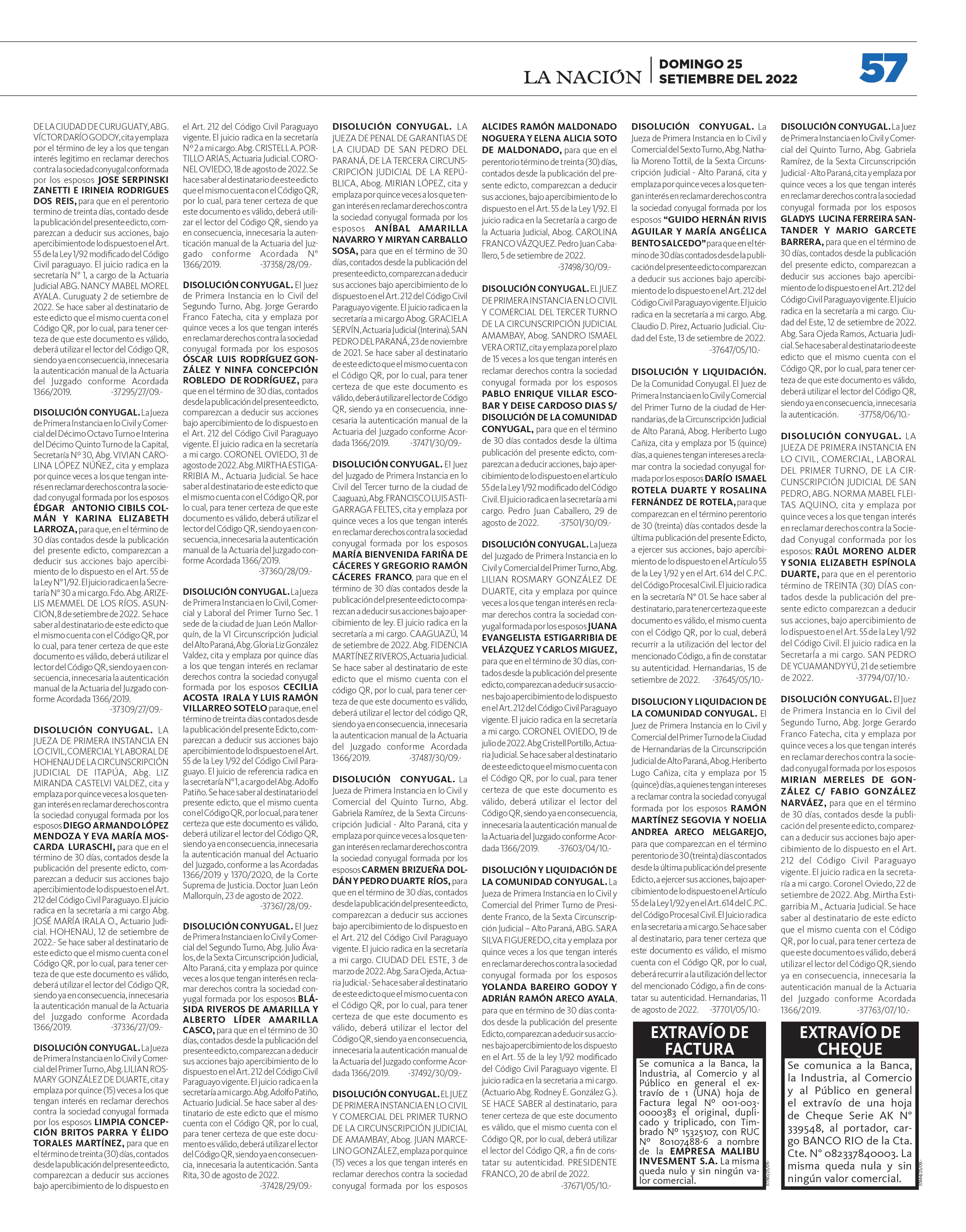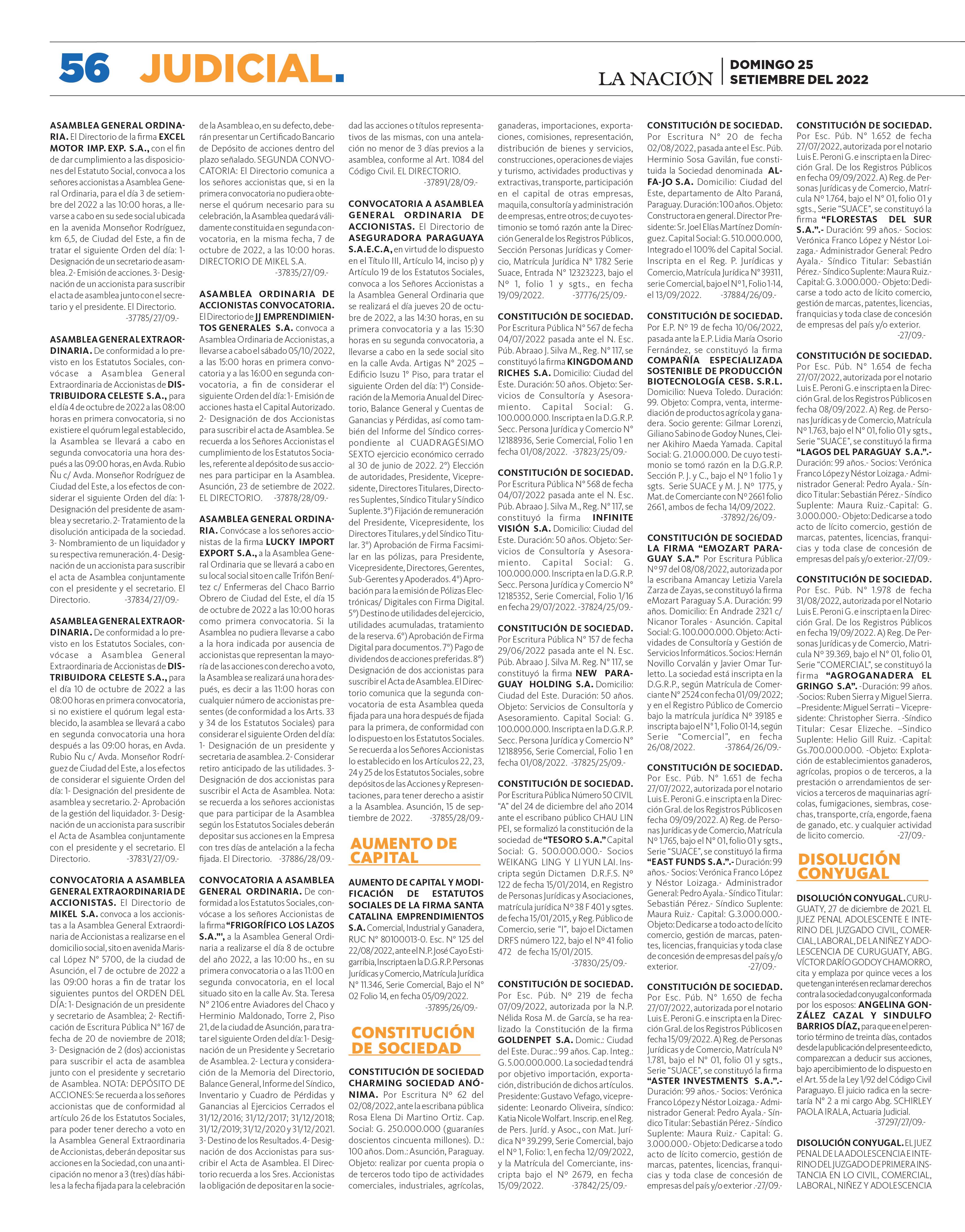 DOMINGO 25 DE SETIEMBRE DEL 2022 PARAGUAY AÑO 28 · Nº 9.933 G. 10.000