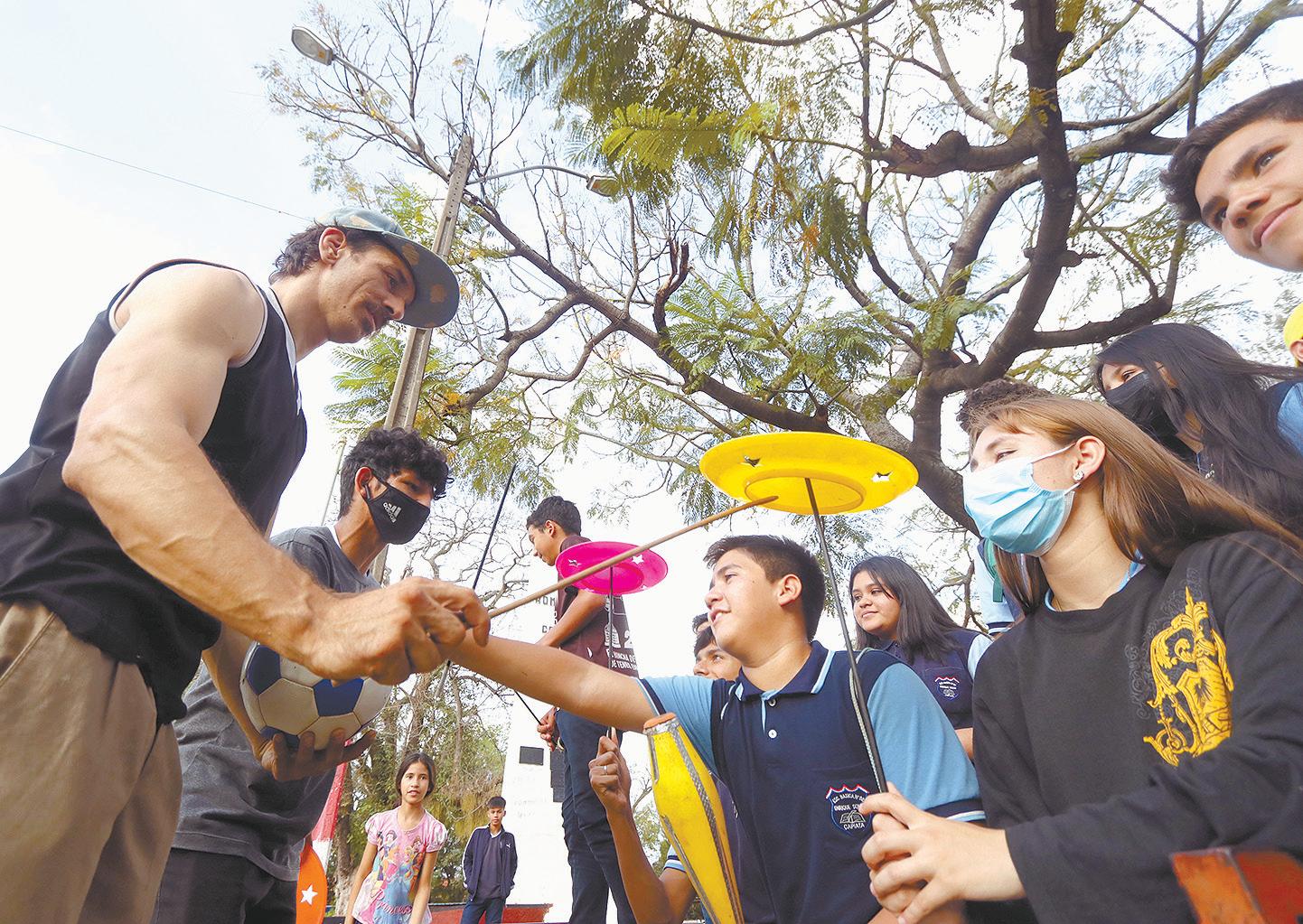 Están en semáforos, pero también en eventos. Son hijos del circo milenario y de la necesidad humana de recrearse, moverse, sentir la gracia del cuerpo. Planean encontrarse una vez por mes hasta fin de año en Capiatá. Ellos creen que el arte, más que una mera forma de representación, es un estilo de vida mediante el cual cuentan historias a través de los objetos partiendo de un minucioso escrutinio del equilibrio y la gravedad. P. 32-33