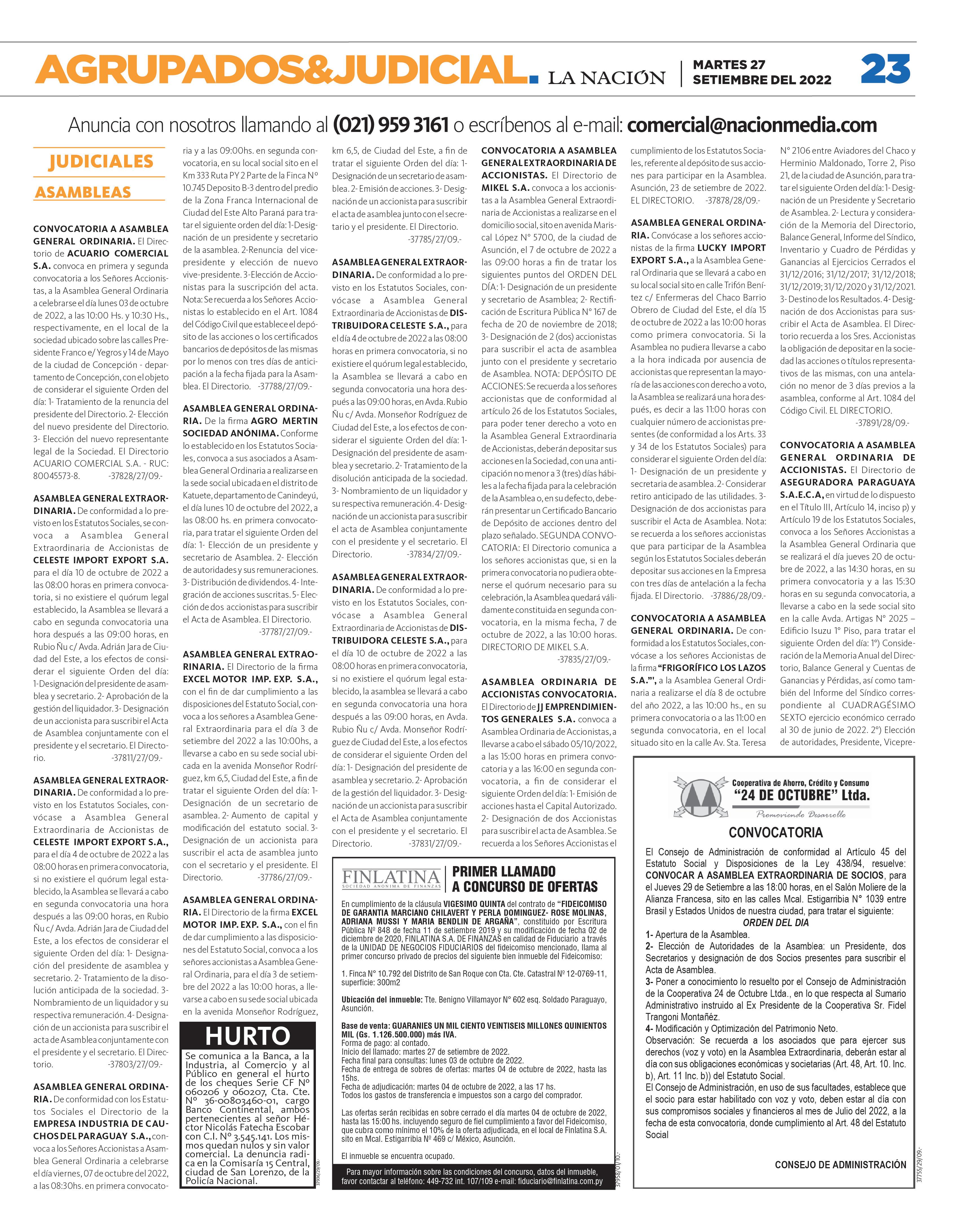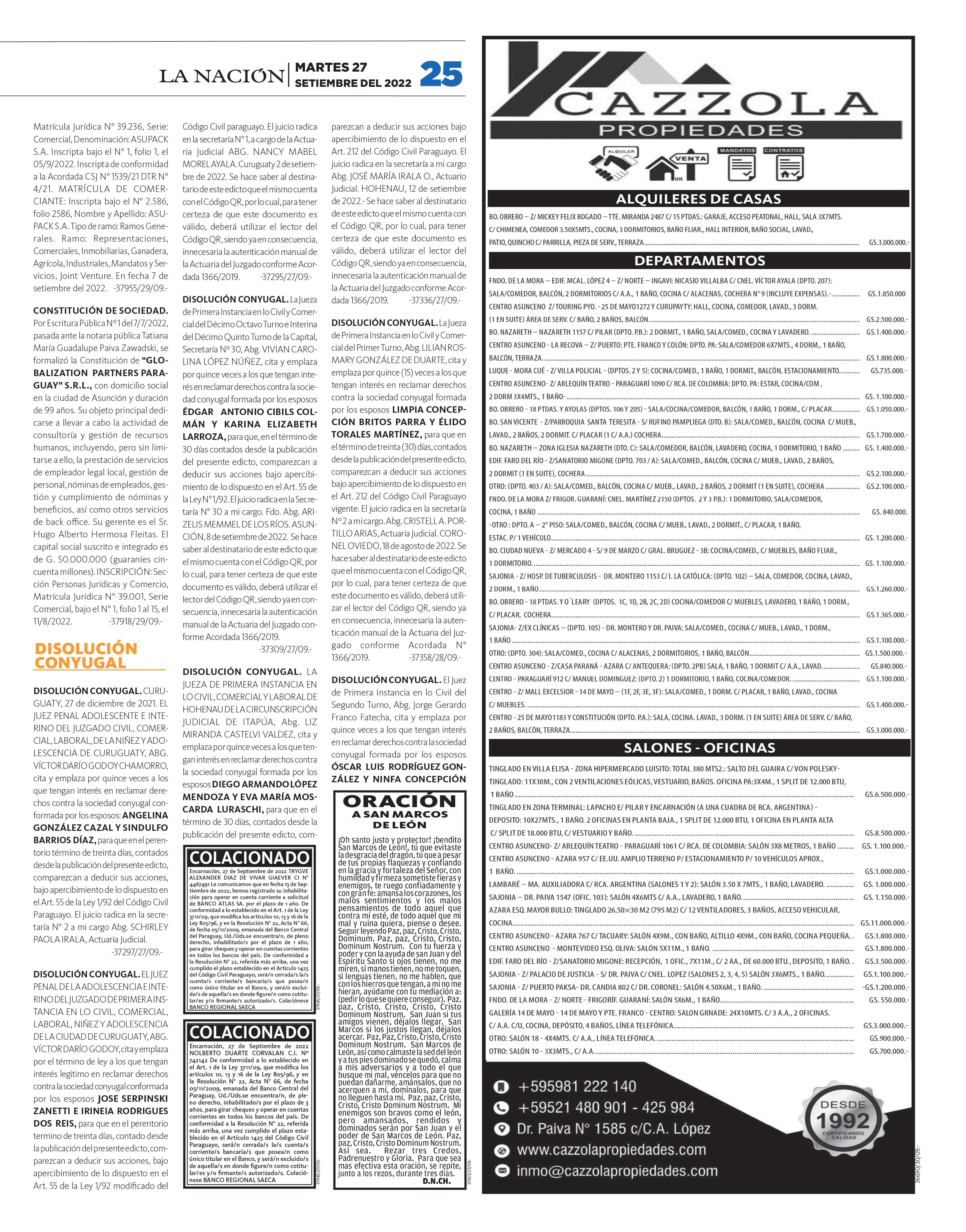 4-4-2 JÚNIOR ALONSO MIGUEL ALMIRÓN MARTES 27, SETIEMBRE DEL 2022 Luqueño, de fiesta con el retorno a Primera P. 31 JUEGOS ODESUR: Paraguay está listo para recibir a la fuerza deportiva. P. 30 AMISTOSO ANTE LA MUNDIALISTA MARRUECOS