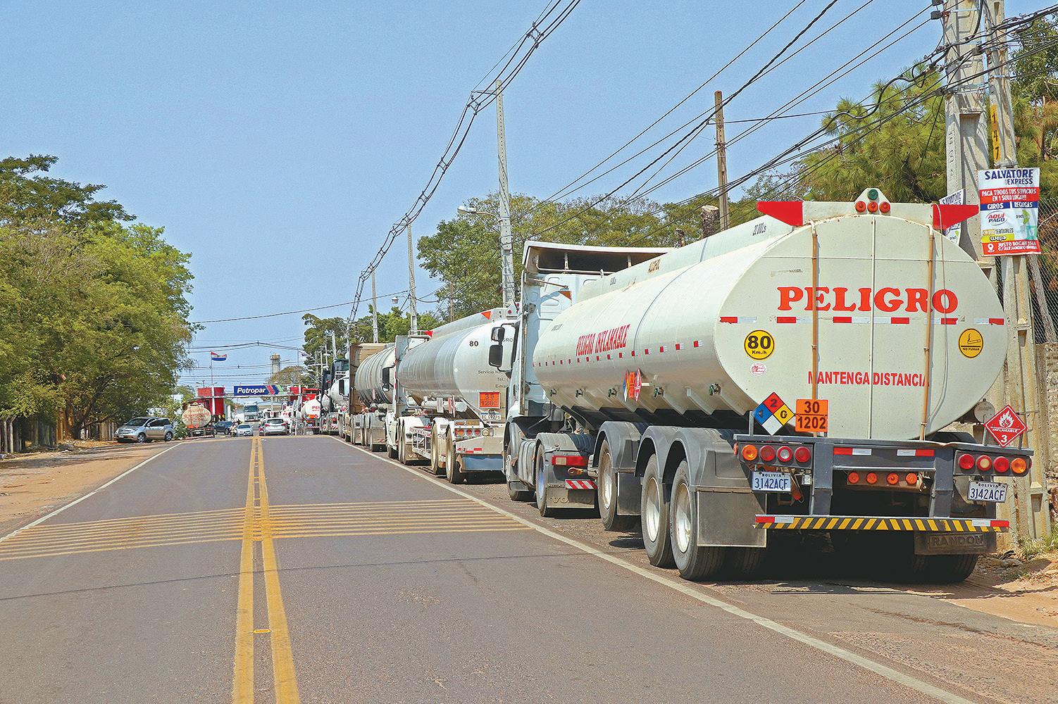 Camiones cisternas de la YPFB haciendo filas frente a Petropar.