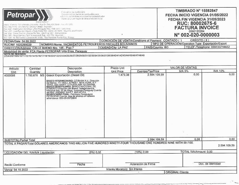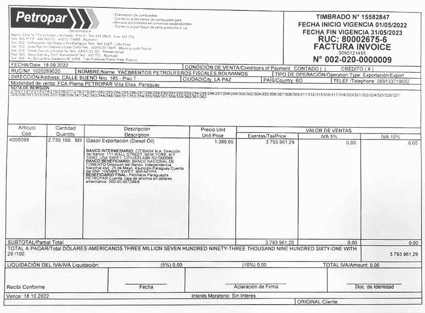 Facturas muestran que Petropar redujo 6% el precio de gasoil que le vende a los bolivianos en dos semanas; es decir, aquí debió bajar G. 600 el litro el precio del diésel.