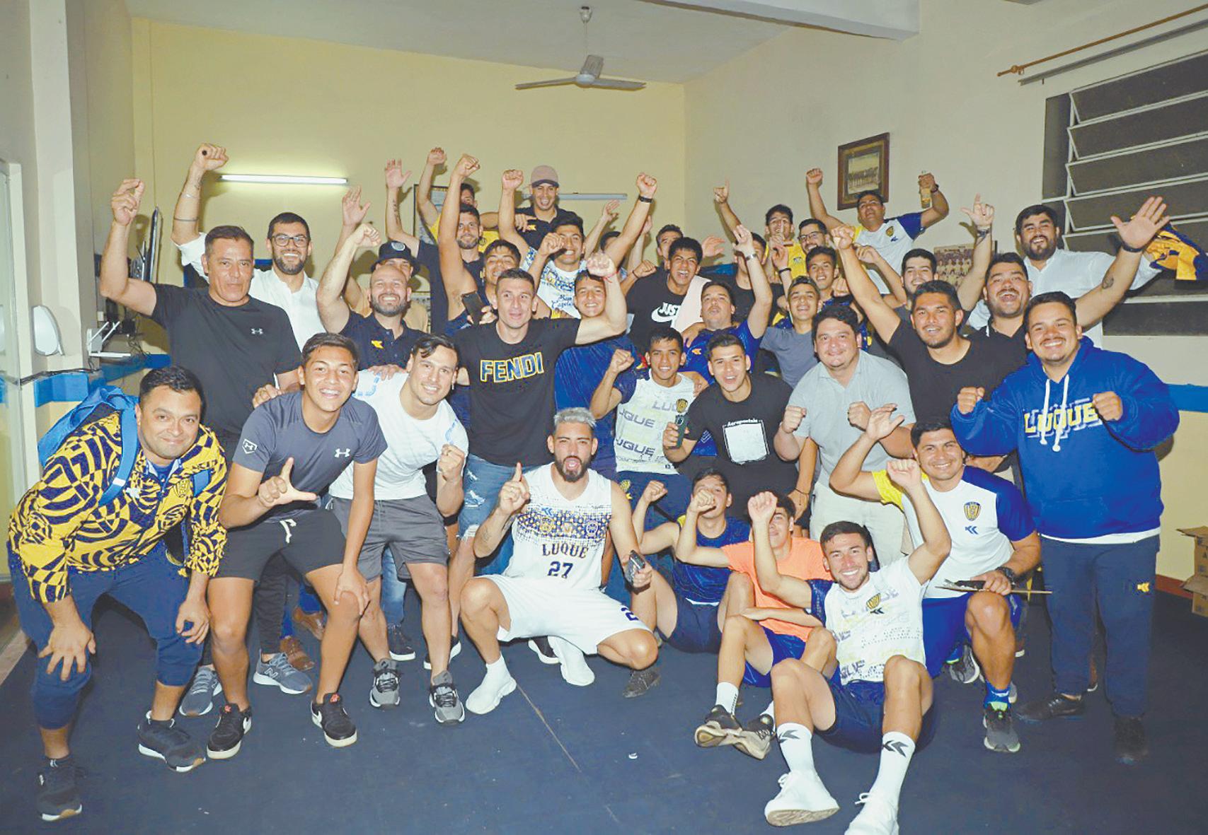 Jugadores y cuerpo técnico del Sportivo Luqueño celebran el retorno a Primera División. El Auriazul vuelve a la máxima categoría tras un año de peregrinar en la categoría Intermedia.