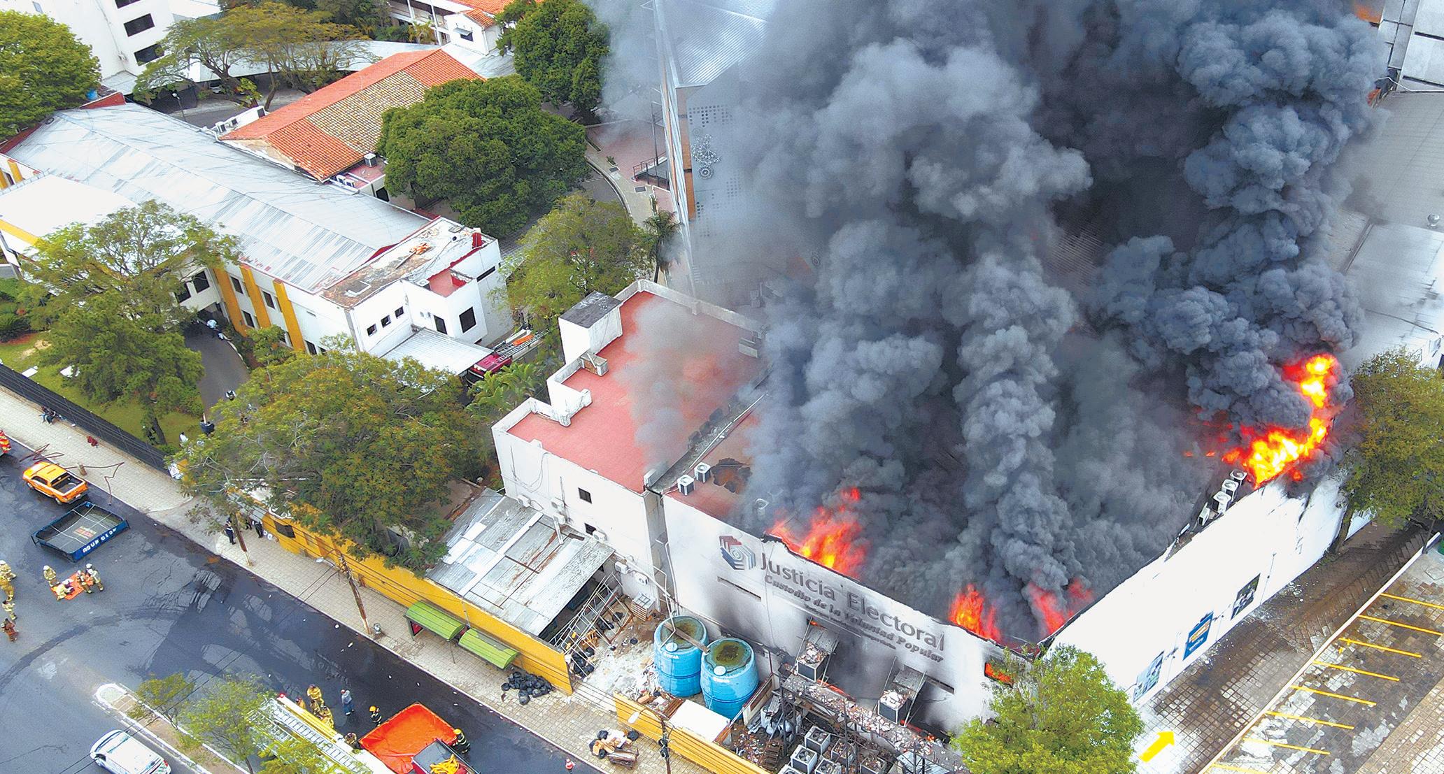 La avenida Eusebio Ayala fue inmediatamente clausurada para permitir el trabajo de los bomberos y el siniestro habría consumido unas 8.000 urnas electrónicas que debían ser utilizadas en las elecciones del 18 de diciembre, según informaron desde el TSJE.