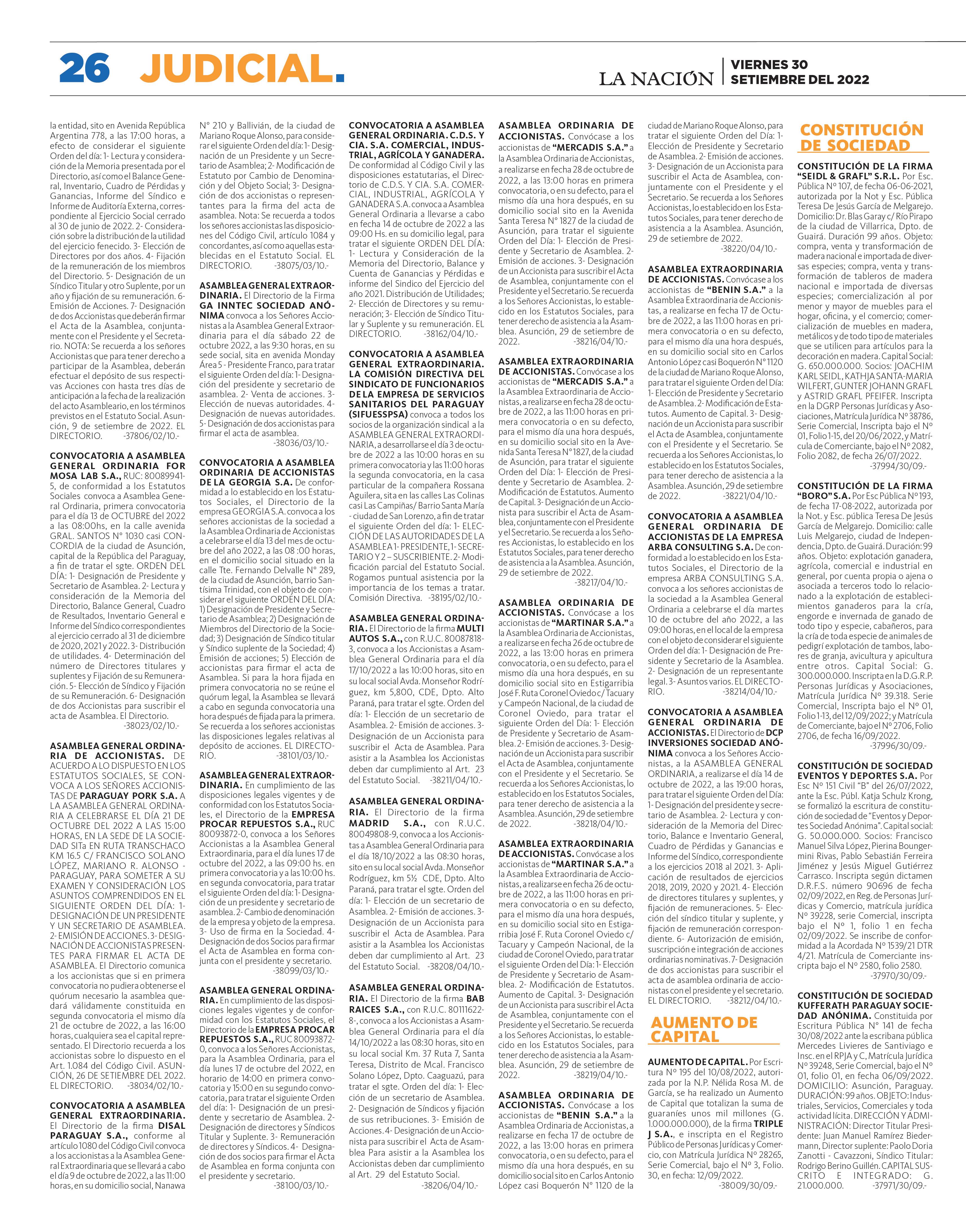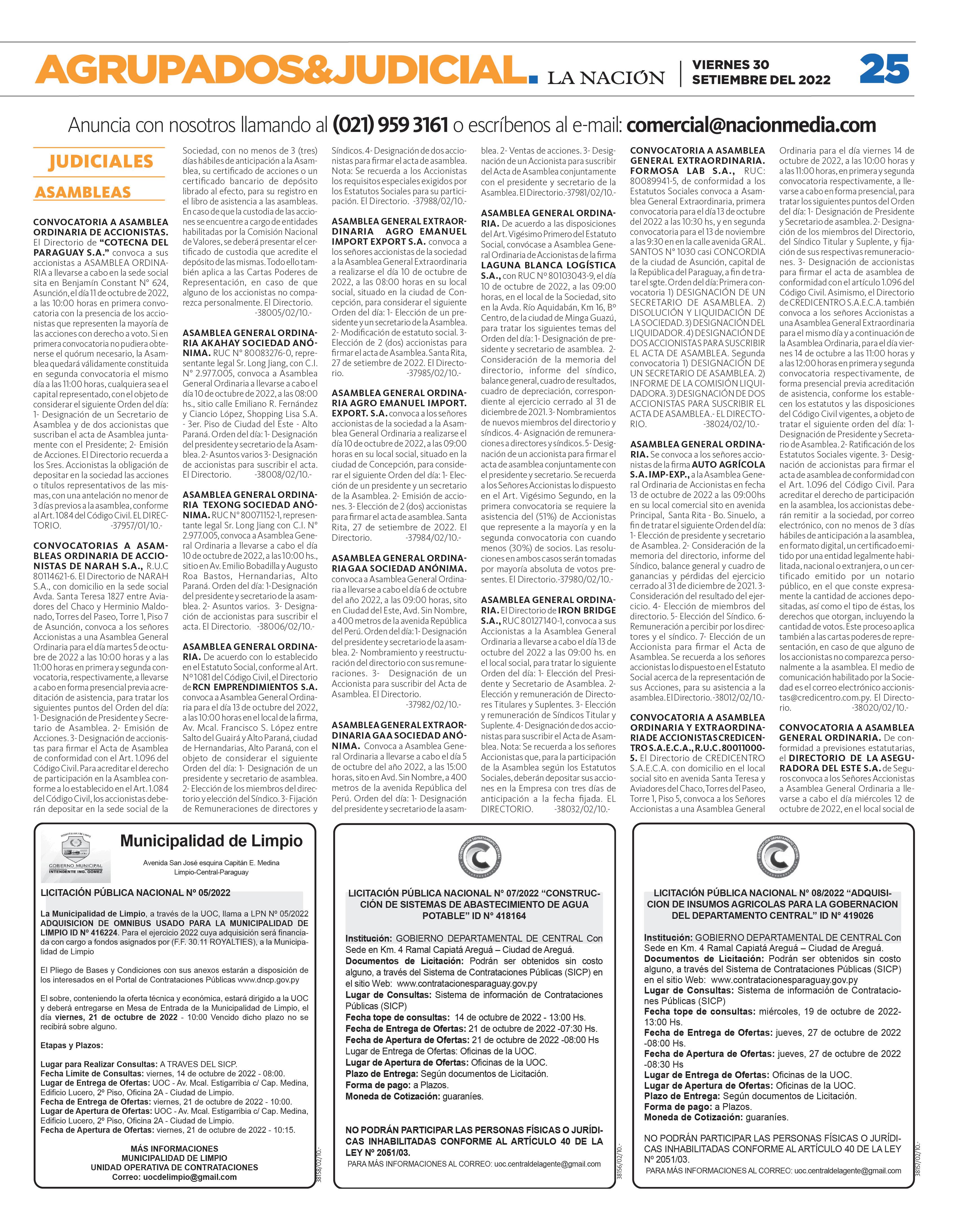 VIERNES 30, SETIEMBRE DEL 2022 HOY EN VILLA ELISA: Cerro se enfoca en Sol para seguir como líder P. 31 PREOCUPANTE: Estamos “perdiendo la Triatlón Encarnación
