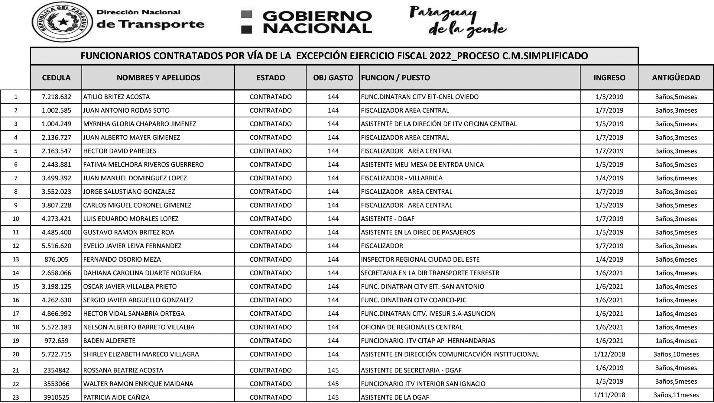 Hay que recordar que según el director nacional de Trans porte, Juan José Vidal, las contrataciones realizadas bajo esta modalidad obede cen a una urgencia de la ins titución de ocupar esos pues tos. Sin embargo, dentro de la nómina de 23 personales publicada el día de ayer, con tratados entre el 2018 y el 2021, se encuentra una mayo