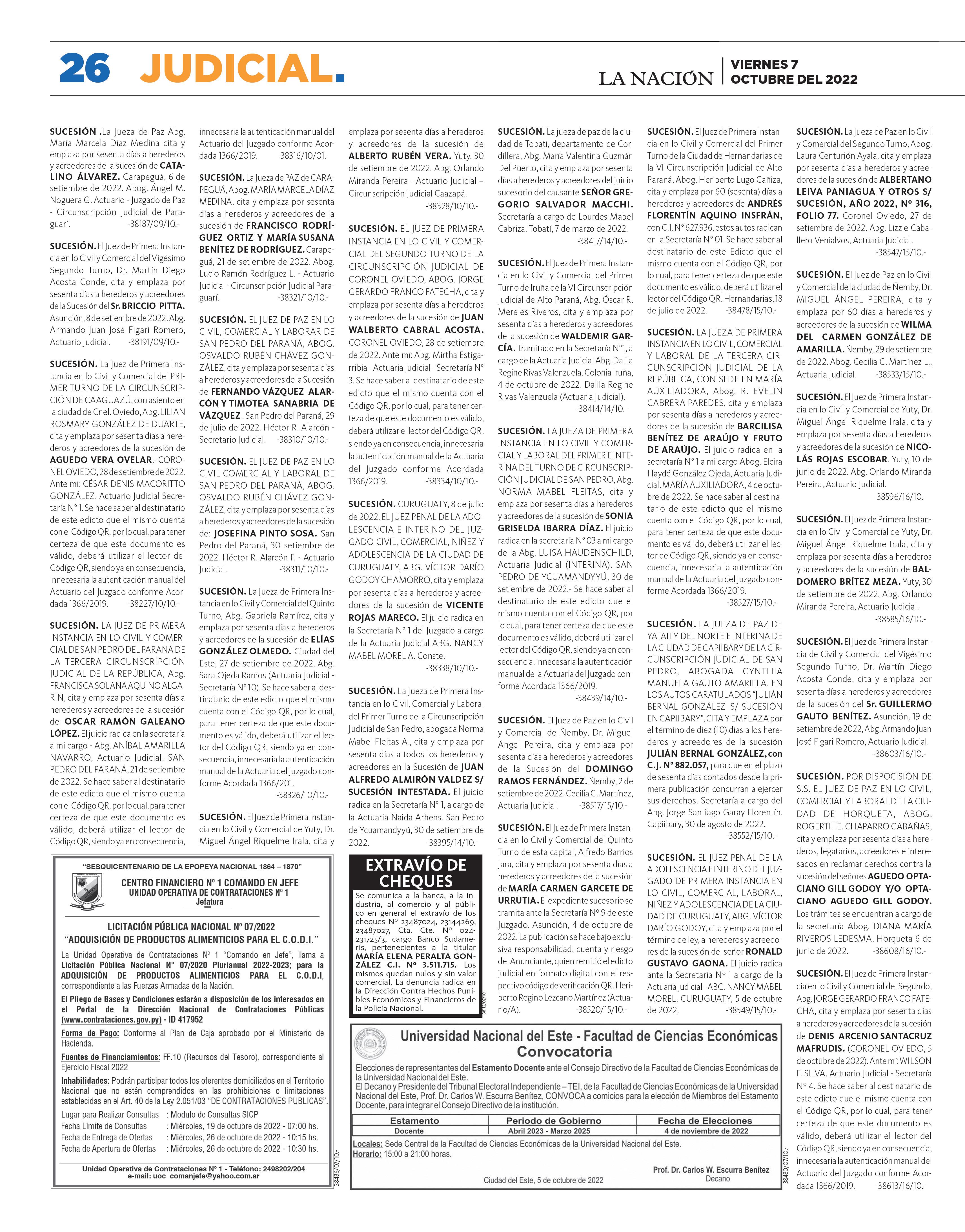 contactos con narcos VIERNES 7 DE OCTUBRE DEL 2022 PARAGUAY AÑO 28 · Nº 9.945 G. 6.000 CARLOS JURI FESTÍN DE CUPOS: Sube a 50 la cantidad de contratados sin ningún concurso en la Dinatran P. 3 ELECCIÓN DE FISCAL: “Se debe respetar el período de mandato”, según el legislador y constitucionalista P. 6EURO 6.800 7.250 COTIZACIONES COMPRA VENTA DÓLAR CHEQ. 7.105 7.130 PESO ARG. 24 30 DÓLAR EFEC. 7.030 7.130 REAL 1.310 1.380 En