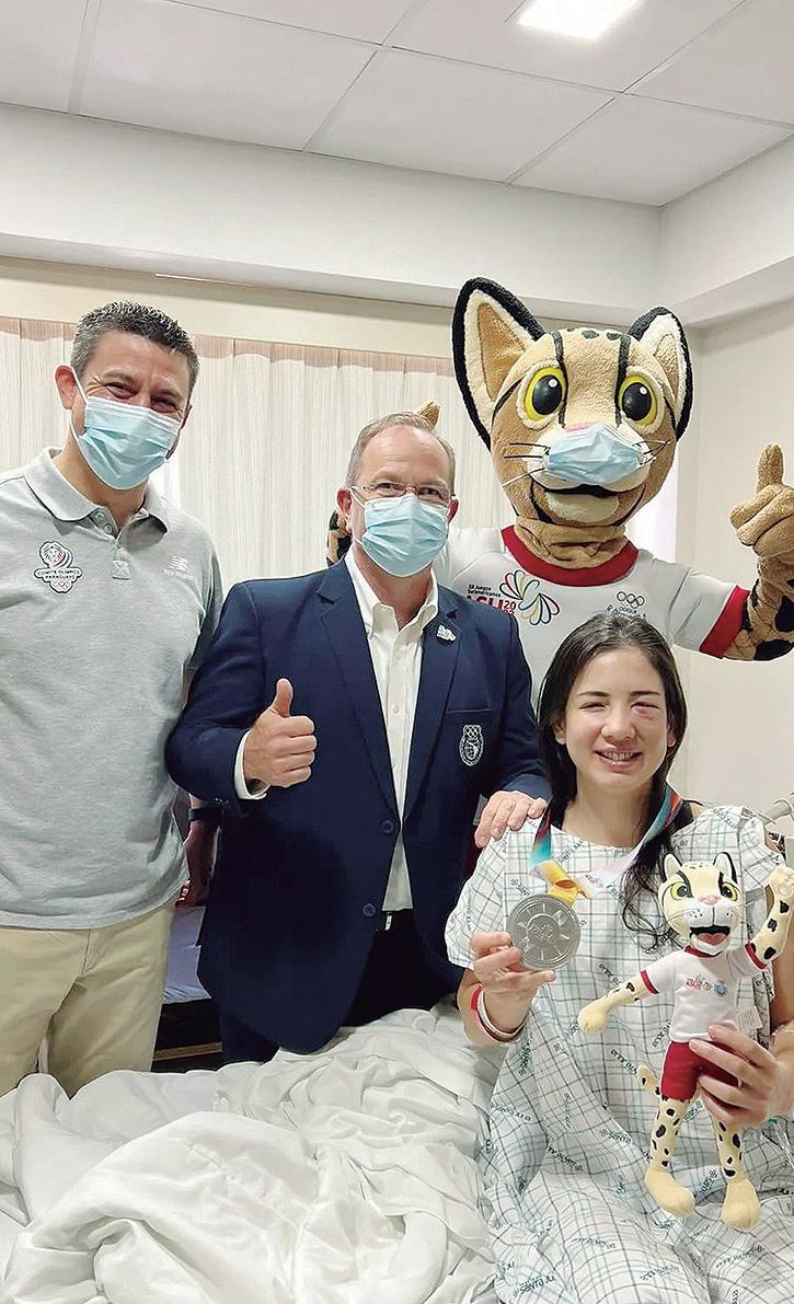 “Me hicieron todos los estudios y estoy en obser vación, realmente el COP se lució y me siento muy mimada y cui dada por ellos”, expresó la kara teca Yennifer Ser vín, medalla de plata, quien reci bió ayer viernes la visita de Camilo Pérez, Julio Ferrari y Tiríka, en su lecho de reposo tras recibir un fuerte golpe en el pómulo en su camino a la con sagración en el podio.