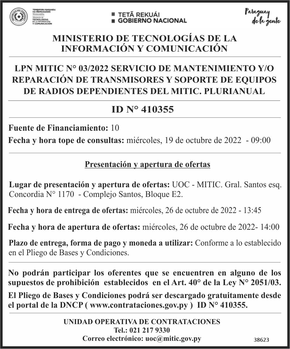 de Defensa, esto no fue impe dimento para que el contral mirante se alce con la licita ción en la que se presentaron otras dos firmas: La Fluvial de Transporte SA y Flor Jara y CIA SRL, esta última tam bién se llevó parte de la licita ción.La empresa Trasnfluvial ya había sido adjudicada por la INC en plena pandemia, en el 2020 se alzó con un contrato de G. 9.916.754.542 también por servicio de flete.