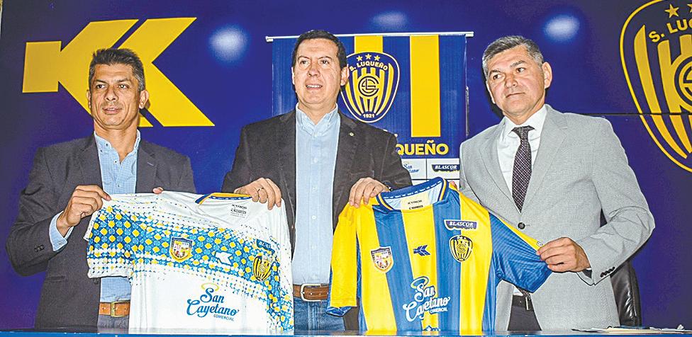 Gustavo Florentín, Daniel Rodríguez (centro) y Denis Caniza durante la presentación en Luqueño.