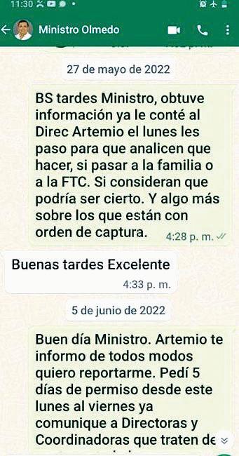Revelan mensajes entre alta funcionaria del Buen Pastor y el entonces ministro de Justicia, Édgar Olmedo.
