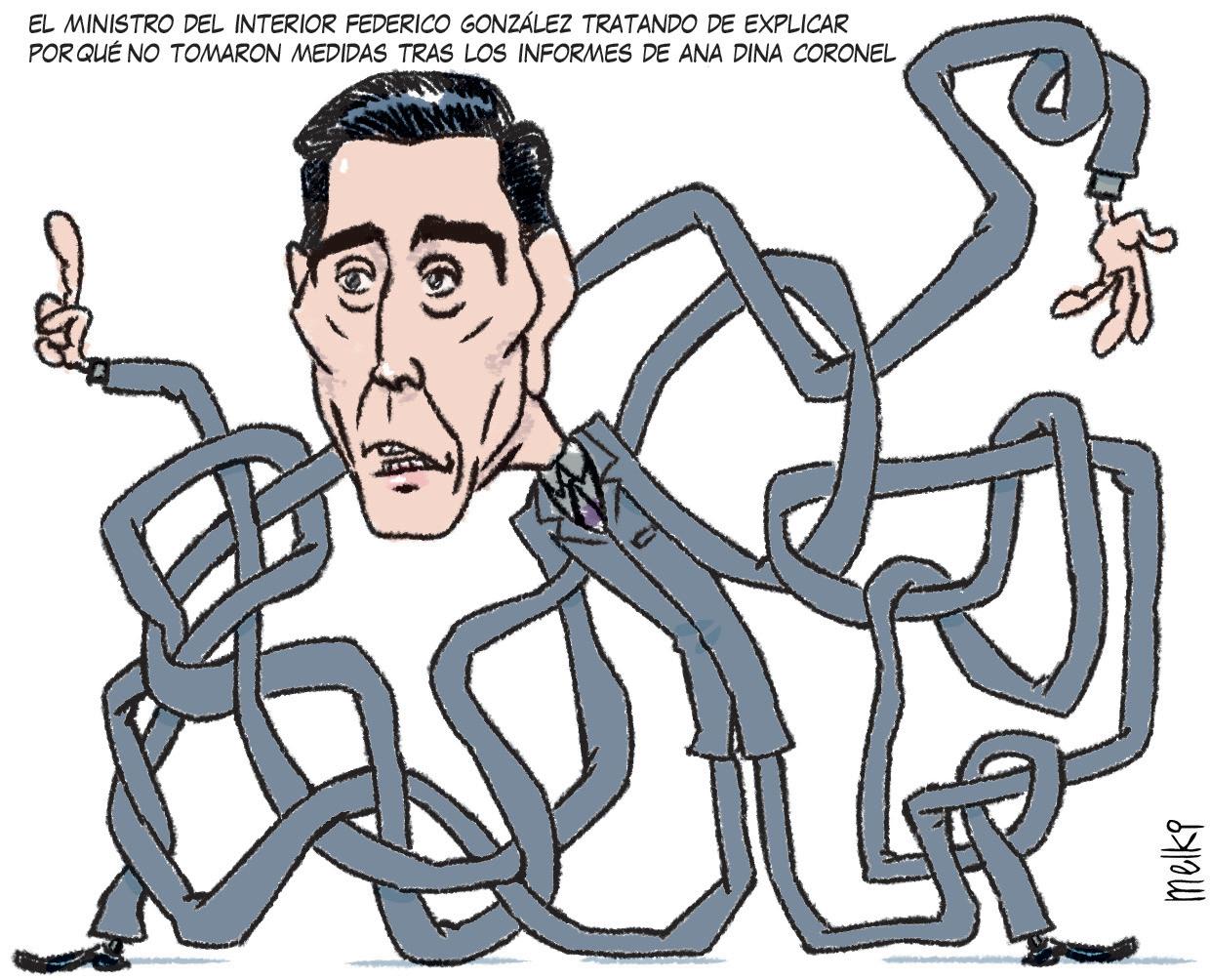 Las fuertes declaraciones de Ana Dina Coronel expusie ron el irresponsable manejo de informaciones sensibles sobre personas secuestradas, que además presionaron al Gobierno a caer en una serie de contradicciones. Primero, porque el ministro del Inte rior, Federico González, dijo en horas de la mañana de ayer lunes que habló con Édgar Olmedo y que este negó haber recibido datos de la locación de Denis, luego se desdijo.