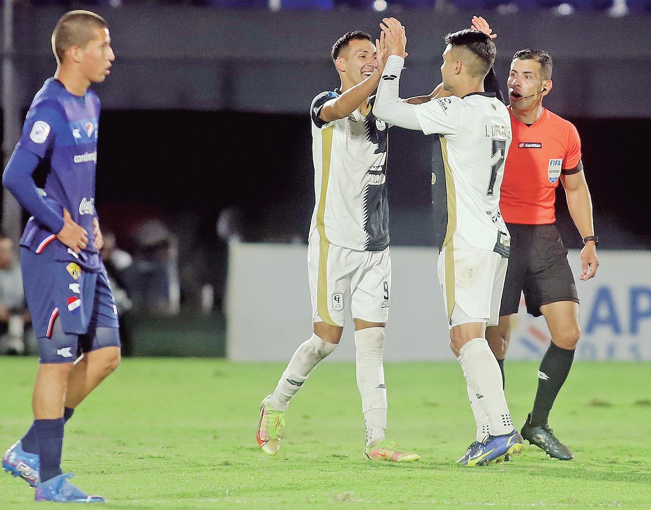 Aguilar y Fernández marcaron en la victoria para el equipo de barrio Jara; Santacruz, de penal, convirtió el empate transitorio.