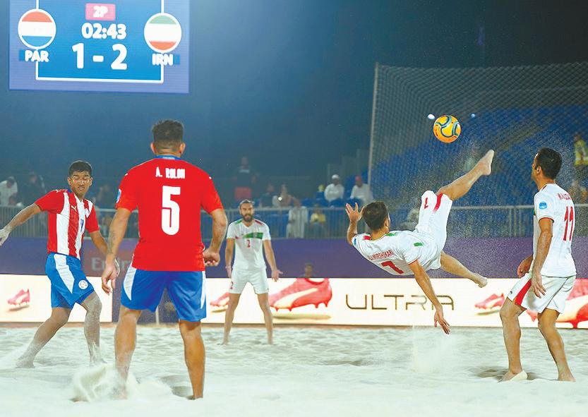 El seleccionado paraguayo de fútbol playa Los Pynandi se estrenó ayer martes en la Emirates Intercontinental Beach Soccer Cup 2022 de Dubái, con derrota por 2 6 ante su similar de Irán. Los albirrojos van hoy por su rehabilitación ante Japón, a partir de las 9:00. En un estreno muy pobre, los actuales campeones de América y medallis tas de oro de los Juegos Suramericanos Asunción, Valentín Benítez y Rolando González maquillaron la goleada anotando los tantos del descuento.