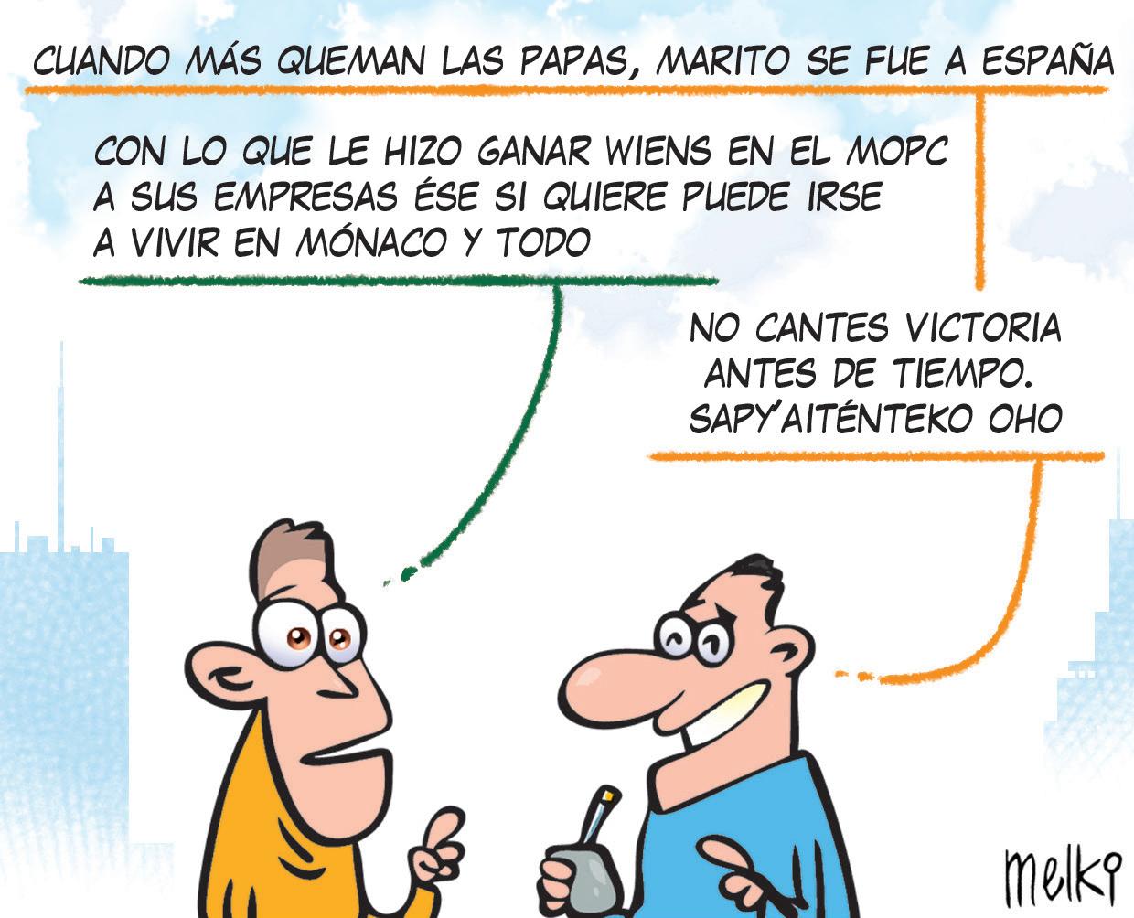Mientras Nicanor “emocionaba” por la victoria de su “amigo” Lula (el mismo Lula que en la habitación de aquel hotel le aclaró que con “Hugo le vamos a apoyar a Lugo”), el pobre de Arnoldo Wiens, dos días antes de las eleccio nes en Brasil, abogaba por el triunfo de su “parceiro” Bolso naro. Así de claro está el pano rama dentro del movimiento Fuerza Republicana. Por lo visto, al precandidato presi dencial oficialista ya le retira ron hasta su autonomía para repetir el libreto mal redac tado y de atropellado conte nido que le solían pasar los ase sores del entorno de Marito. Ahora tiene la autoría de sus propios disparates. Cada vez está más solo y desorientado. Nadie sabe hacia dónde dis parar. A medida que se acerca el 18 de diciembre, la morcilla se vuelve más negra. Como el futuro de quienes siguen atra cando los recursos públicos. Y los fondos de las binacionales, pues, se creen un Estado inde pendiente dentro del Estado paraguayo. Y se manejan en consecuencia. Pero, tam bién, les llegará su San Mar tín. Tiempo al tiempo. Nada dura para siempre. Ni siquiera la impunidad que concede los sobornos.