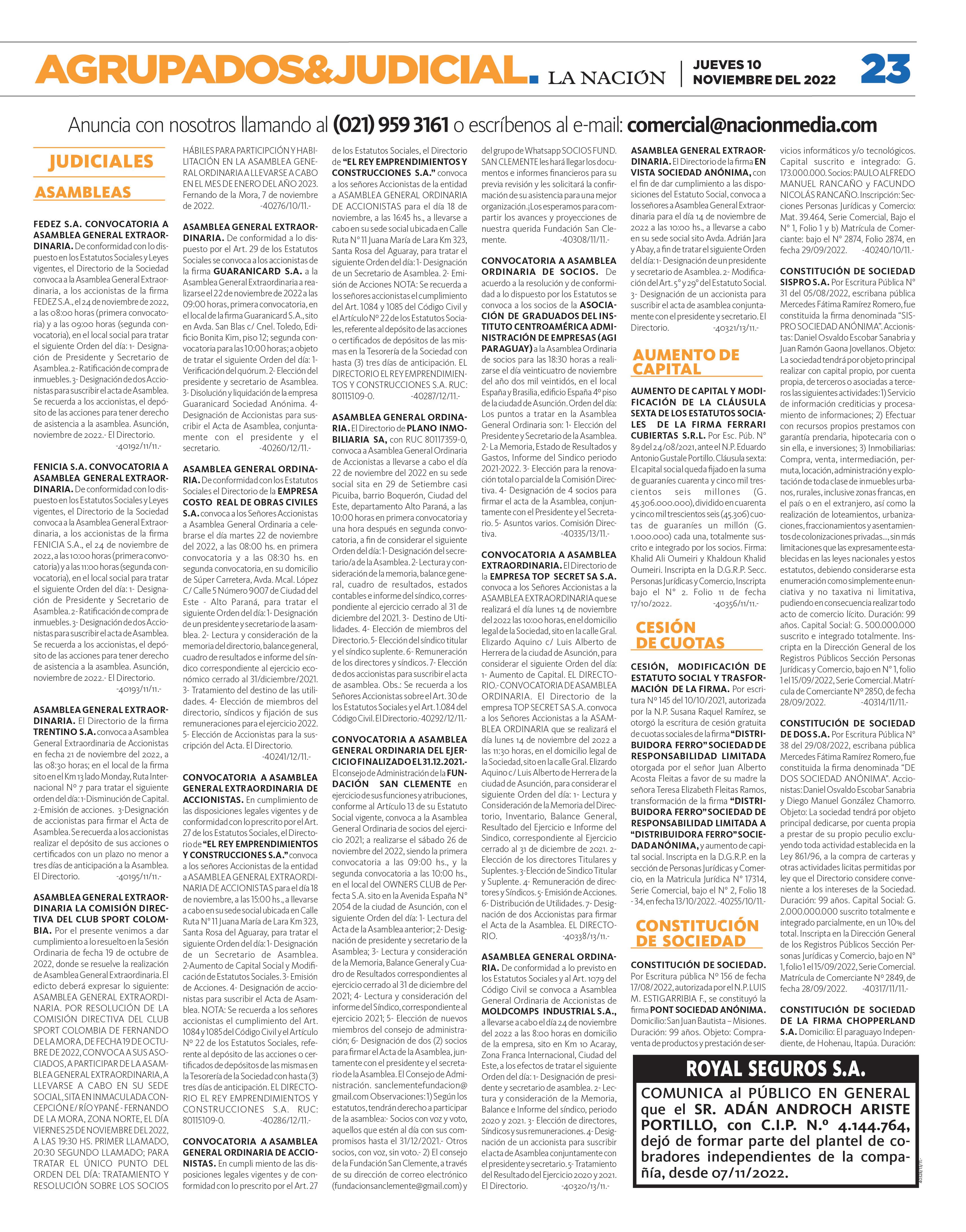 entendible. Nunca estuvo para enterarse de los más de 19.500 fallecidos por el covid19. Pero ha’e el presidente que mejor manejó la pandemia en la región. Según él y solo él. Ni se dio por enterado de los feroces actos de corrup ción cometidos durante su gobierno con el pretexto de la pandemia. Ni de las rutas asfaltadas con el asfalto pro veído por su propia empresa privada. Ni de la “pasarela de oro” del “Wiens derecho de la corrupción”. Ni de las licitaciones amañadas a tra vés de su cuñado, el influen cer mayor en el Ministerio de Obras Públicas y Comu nicaciones (MOPC), durante la época dorada de Arnoldo Wiens, quien ahora ya quiere