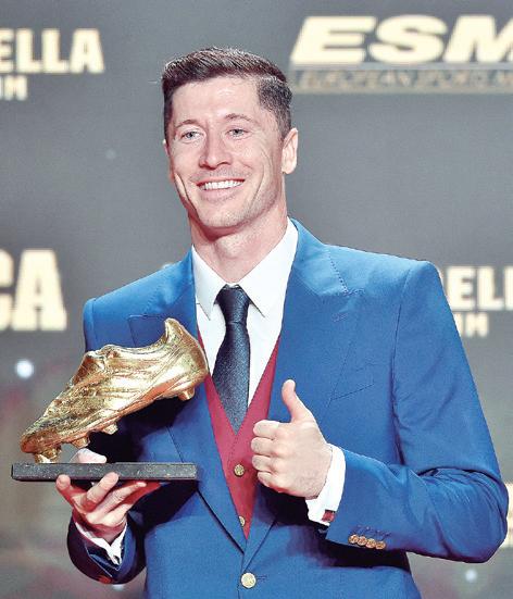 El delantero polaco repite como máximo artillero de las ligas europeas después de alzarse con el premio el pasado año tras marcar 41 goles en la temporada 2020-2021.
