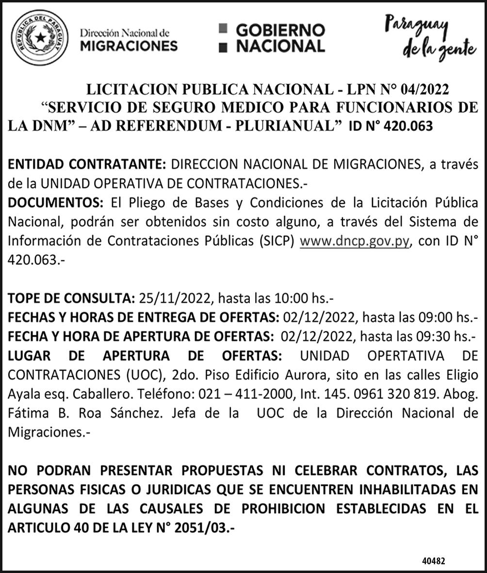 De esta forma, hacen referencia a la confusión provocada por documentos no publicados de la licitación para el nuevo hospital de G. 226 071 millones, cuestionada además por supuesto direc cionamiento y actualmente investigada por la Dirección Nacio nal de Contrataciones Públicas (DNCP).