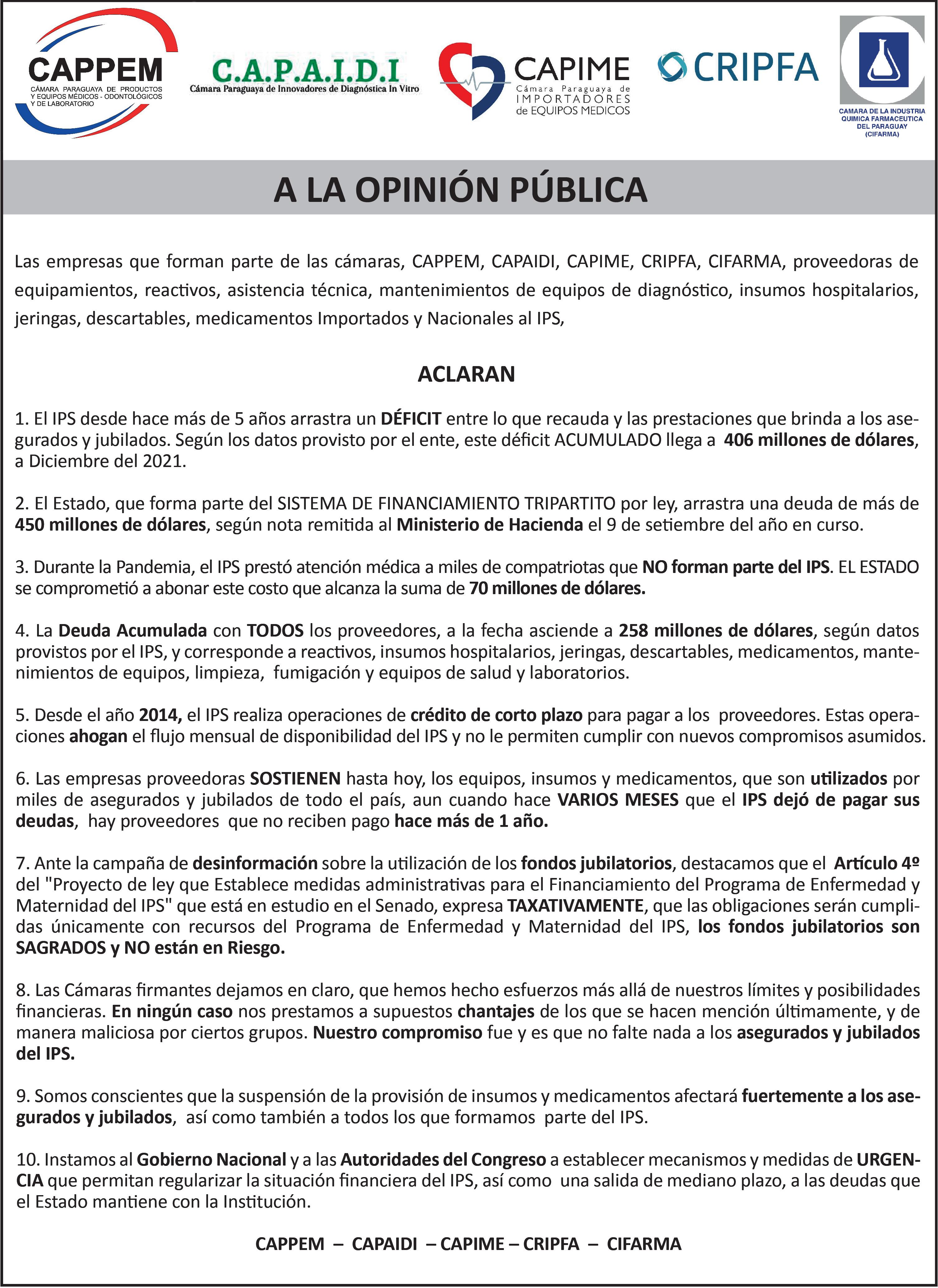 “Si con todos estos detalles se miente a la ciudadanía, resulta evidente que desde la dirección de la previsio nal no existe una postura clara para los intereses de los verdaderos propietarios del IPS, que son los asegura dos. Todo esto es muy pre ocupante y al final se foca liza en un presidente que no tiene ninguna capaci dad para estar al frente de la previsional”, remarcó el parlamentario.