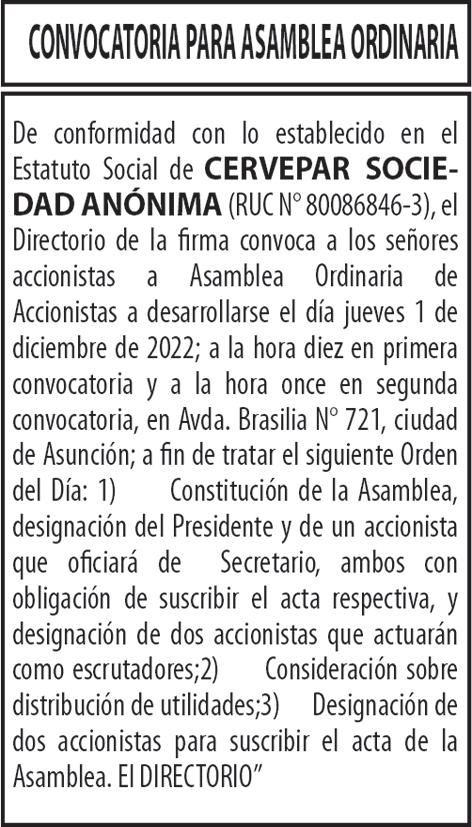 VIERNES 18 DE NOVIEMBRE DEL 2022 PARAGUAY AÑO 28 · Nº 9.987 G. 6.000