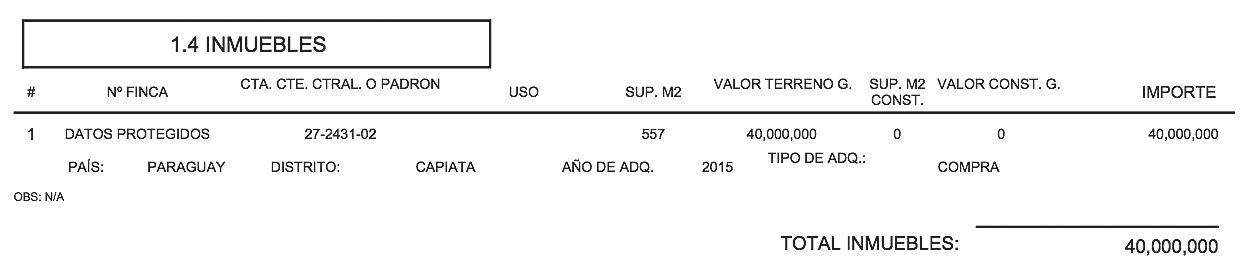 En el 2022 Valdez declaró una propiedad en Capiatá que cotizó en G. 8 millones, en tanto que Chamorro Portillo, en el 2015, declaró el mismo inmueble con la misma cuenta catastral, pero a un costo de G. 40 millones.