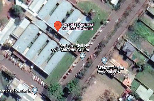 La anterior Oficina Regional de la Senad de Canindeyú estaba frente al Hospital Regional de Salto del Guairá, así mismo como los narcotraficantes detallaron en la llamada interceptada.