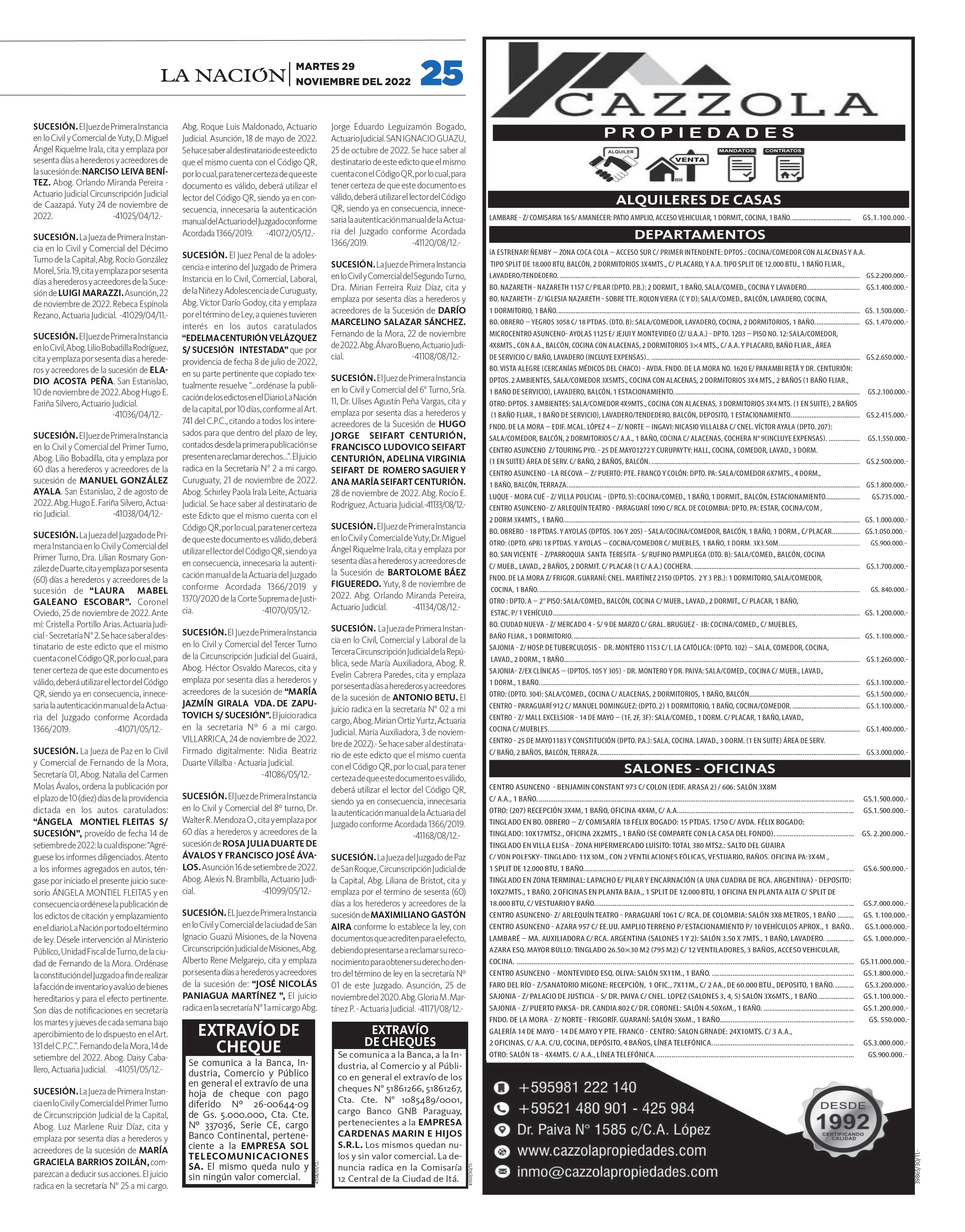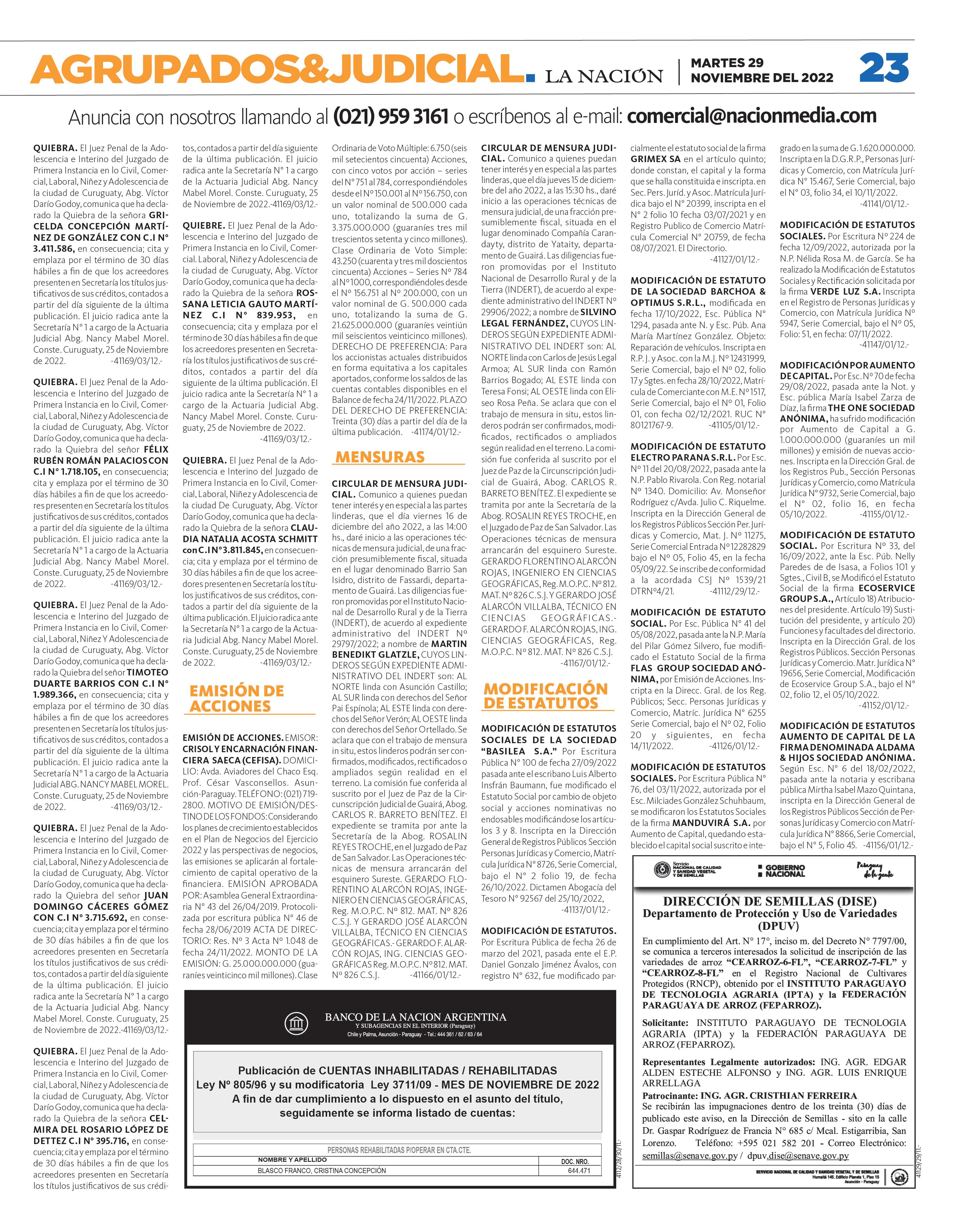 DEUDA DEL MEC PONEN EN RIESGO A SUS PROPIOS INFORMANTES MARTES 29 DE NOVIEMBRE DEL 2022 PARAGUAY AÑO 28 · Nº 9.998 G. 6.000 MULTITUDINARIO: Honor Colorado hizo cierre en capital con una masiva presencia de colorados P. 5 EURO 7.200 7.500 COTIZACIONES COMPRA VENTA DÓLAR CHEQ. 7.190 7.250 PESO ARG. 20 28 DÓLAR EFEC. 7.110 7.220 REAL 1.310 1.380