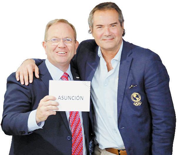 Camilo Pérez (Izq.), presidente del Comité Olímpico Paraguayo, celebrando la designación de Asunción.