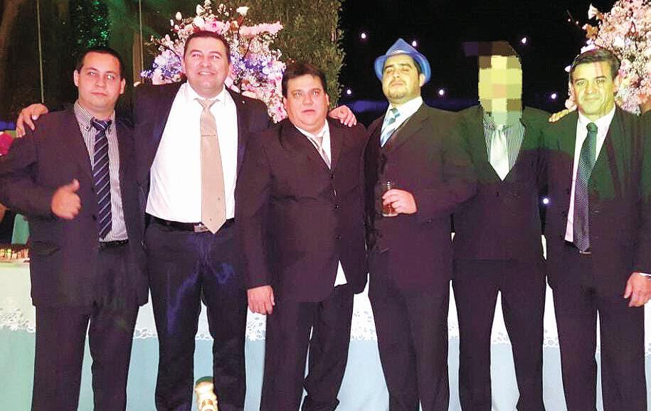 (De izq. a der.) El funcionario municipal Sergio Manuel Espínola, el senador liberal Líder Amarilla, el funcionario del IPS Renán Leguizamón Garcete, Rodrigo Diosnel Paredes y Elvio Irala, quienes forman parte de Terranova Inmobiliaria SA, empresa de usura
