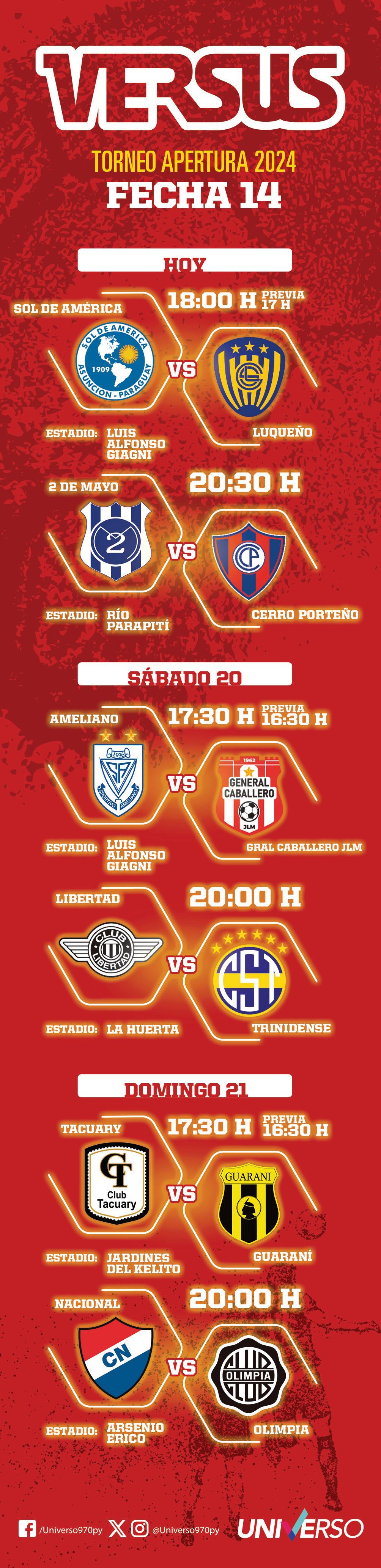 fuera al Tricolor de la fase de grupos de la Copa Libertadores. Con toda su experiencia, el arquero se repuso. “Sin darte cuenta los futboDos partidos atractivos contempla la programación de la tercera fecha de la Intermedia en su primer día de juego. El encuentro principal animarán el necesitado Rubio Ñu sin punto alguno y uno de los líderes Deportivo Recoleta (6 unidades), que viene alzado con alto rendimiento ofensivo. Será en el estadio La Arboleda, a partir de las 17:15, con el arbitraje de Marcos Galeano. En el juego de fondo de hoy se cruzarán Atlético 3 de Febrero (1) y General Martín Ledesma (3), en el estadio Antonio Aranda de Ciudad del Este, desde las 19:30. Mientras que mañana, el otro puntero de la Intermedia, Resistencia (6) recibirá a un complicado rival, Atlético Tembetary (3), en la cancha Tomás Beggan Correa, desde las 9:00. Completarán la jornada Atlético Colegiales (0) vs. Guaireña FC (2).