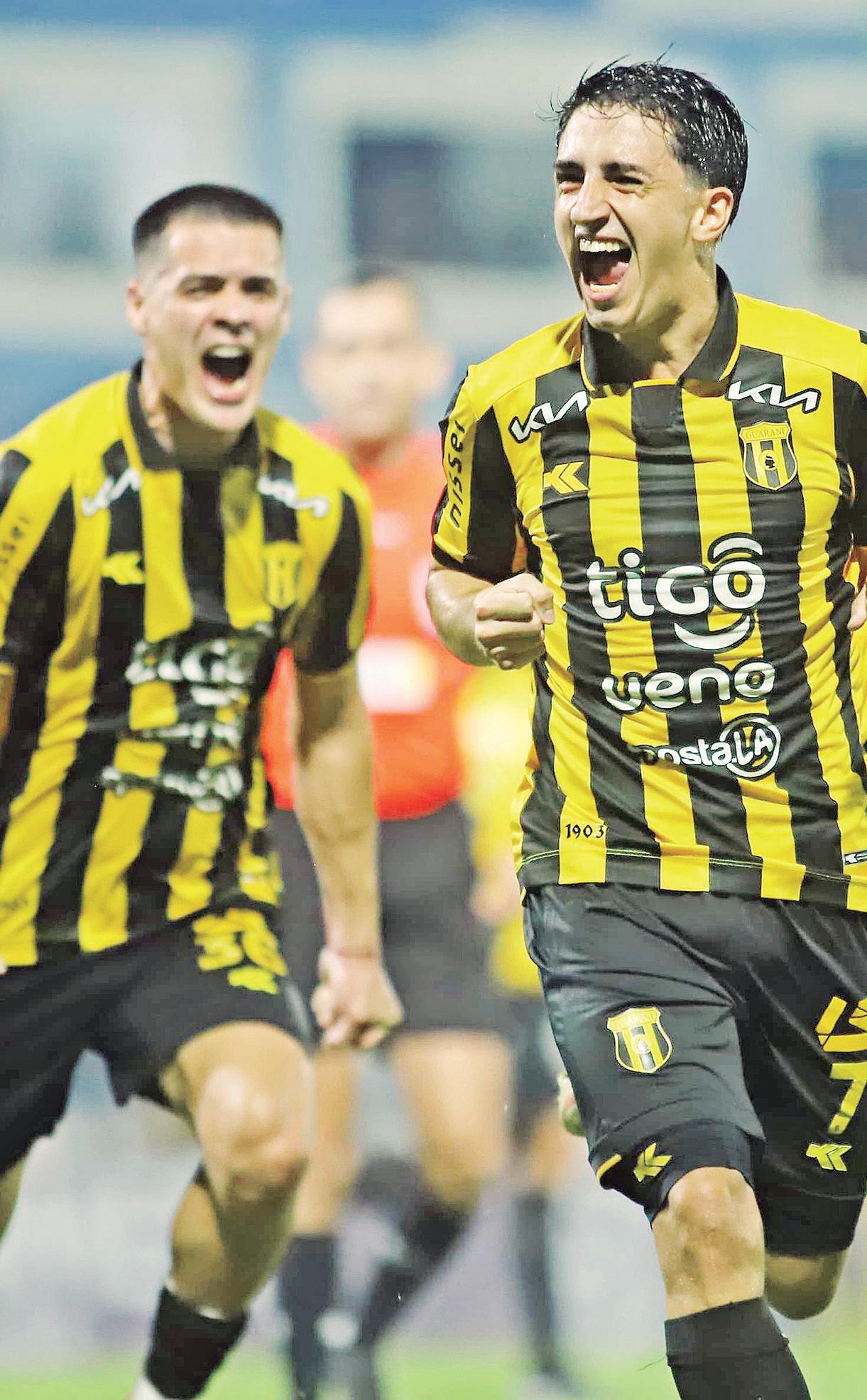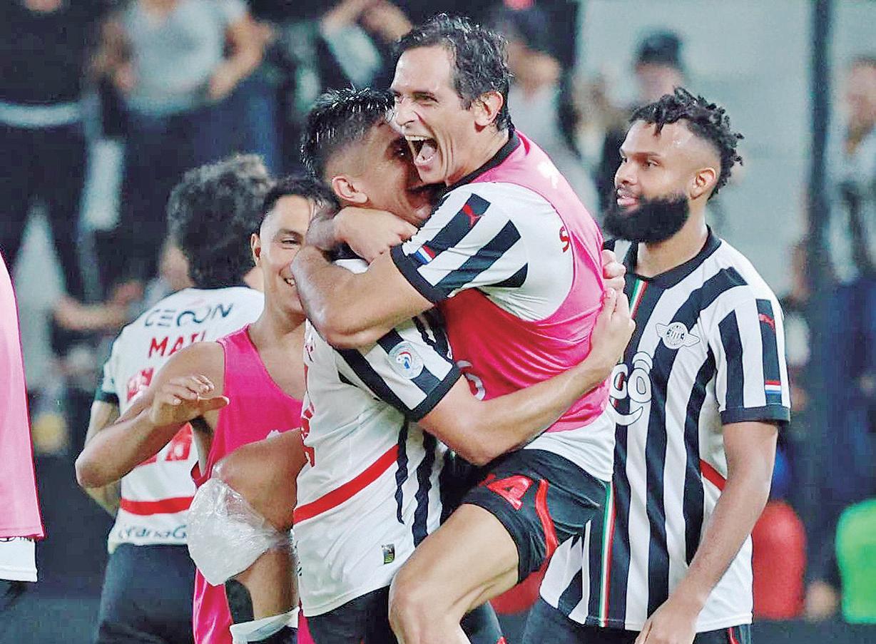 Manzur y Martínez en plena celebración en la victoria sobre Luqueño. Guaraní jugará también un partido clave el miércoles por Copa Sudamericana