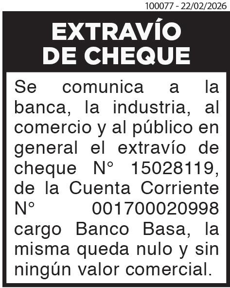 CONVOCATORIA PARA ASAMBLEA GENERAL ORDINARIA. El Directorio de la firma JUNIN S.A. con RUC 80151482-7, conforme al Código Civil Paraguayo, convoca a los señores accionistas a la Asamblea General Ordinaria, que se llevará a cabo el viernes 6 de marzo de 2026, en primera convocatoria, a las 09:00 horas y, en segunda convocatoria, a las 10:00 horas, en forma presencial, en el domicilio social de la empresa, situado en la calle 25 de mayo 1894, de la ciudad de Asunción, para considerar el siguiente Orden del Día: 1. Designación de un presidente y secretario de la Asamblea General Ordinaria de accionistas. 2. Consideración de la Memoria anual del Directorio, Informe del Síndico, Balance General y Estado de resultados del ejercicio cerrado al 31 de diciembre de 2025. 3. Destino de los resultados del ejercicio. 4. Designación de los miembros del Directorio y fijación de sus remuneraciones. 5. Designación de síndico titular y suplente y fijación de sus remuneraciones. 6. Designación de accionistas o representantes para firmar el acta de asamblea. Para acreditar el derecho de participación en la Asamblea se recuerda a los accionistas las disposiciones y los plazos establecidos en el Art. 1084 del Código Civil y concordantes, así como aquellas establecidas en los Estatutos Sociales. EL DIRECTORIO./ 100014-22/02/2026